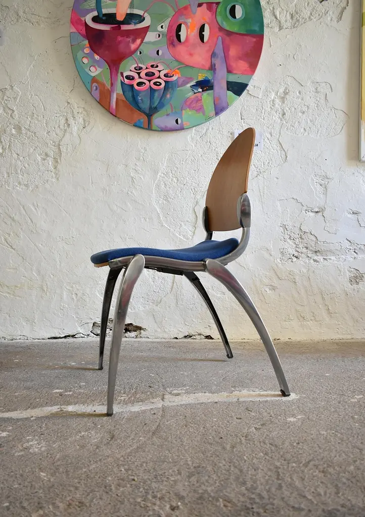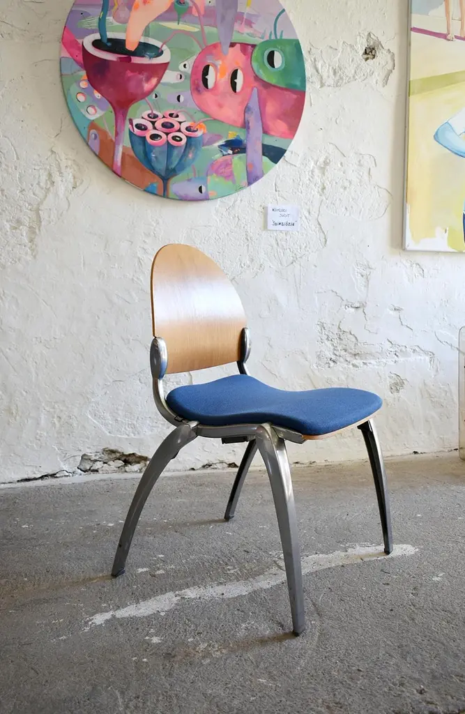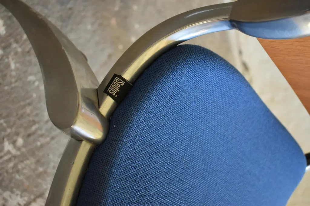 Allow me to present this high-quality Sedus conference chair, a perfect choice for office meeting rooms, conference halls, or a home study. This armchair model combines functionality and style to provide comfortable and professional seating.Features:Manufacturer: Sedus – synonymous with German precision and qualityColor: Deep, elegant dark blue fabric harmonizing beautifully with the aluminum gray metal frameMaterials: Durable, comfortable padded seat and backrest, sturdy aluminum frameDimensions: Seat height approx. 45 cm, width 53 cm, total height 86 cmCondition: Excellent, well-maintained used conditionUsage: Ideal for modern offices, meeting rooms, or home workspacesRemarkably, the protective film is still present in some areas, indicating minimal use and excellent condition.This Sedus chair is not just a seating solution but a true design piece that enhances any professional environment with its appearance and comfort. Thanks to its excellent condition, it is ready to use immediately and will serve its new owner for many years to come.