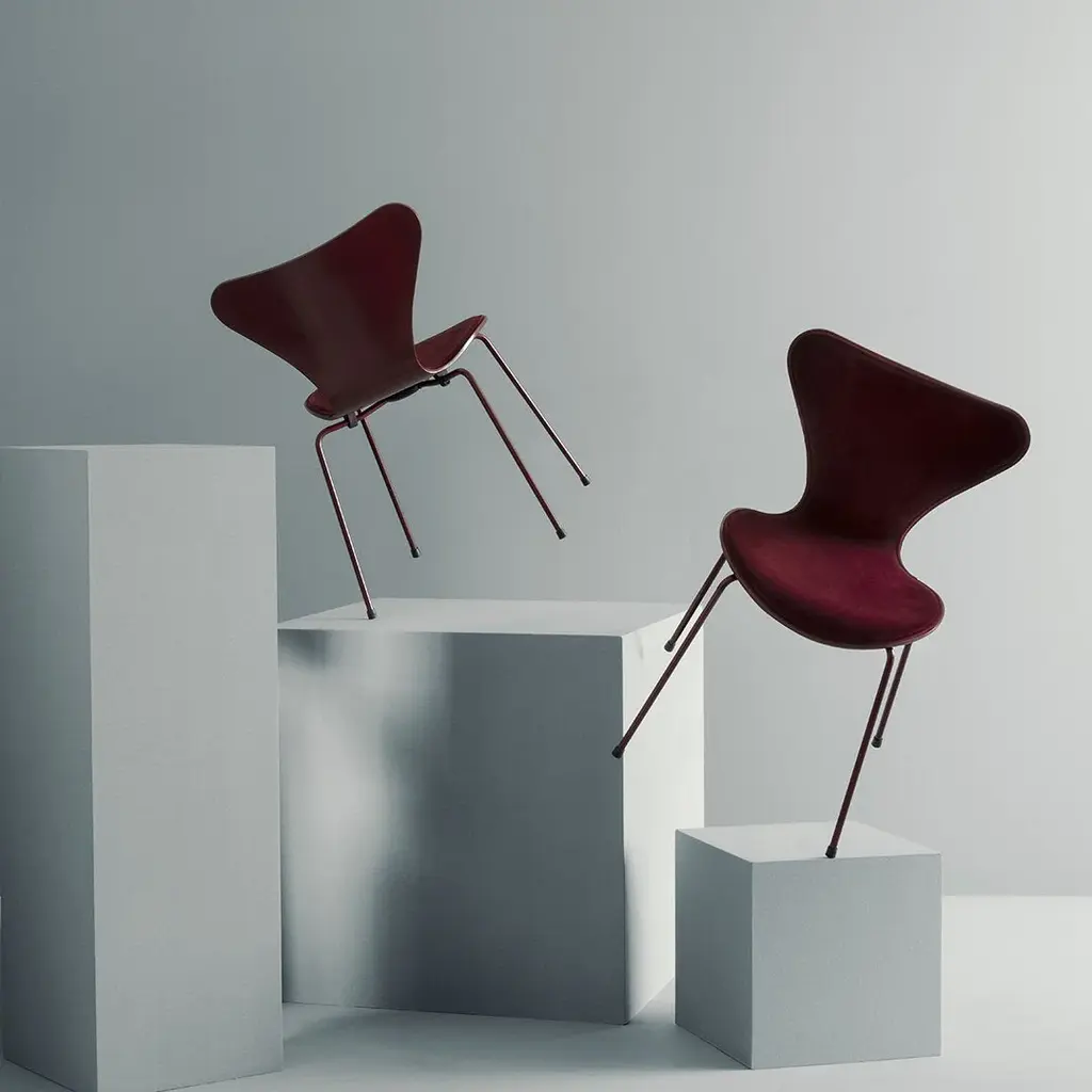 The Series 7 designed by Arne Jacobsen is by far the most sold chair in the history of Fritz Hansen and perhaps also in furniture history. The pressure moulded veneer chair is a further development of the classic Ant chair. The four-legged stackable chair represents the culmination of the lamination technique. The visionary Arne Jacobsen exploited the possibilities of lamination to perfection resulting in the iconic shape of the chair. Series 7 represents the chair in the Fritz Hansen collection with the widest range of applications. Series 7 Chair 3107 Writing Tablet sold separately.
