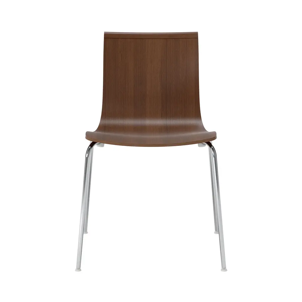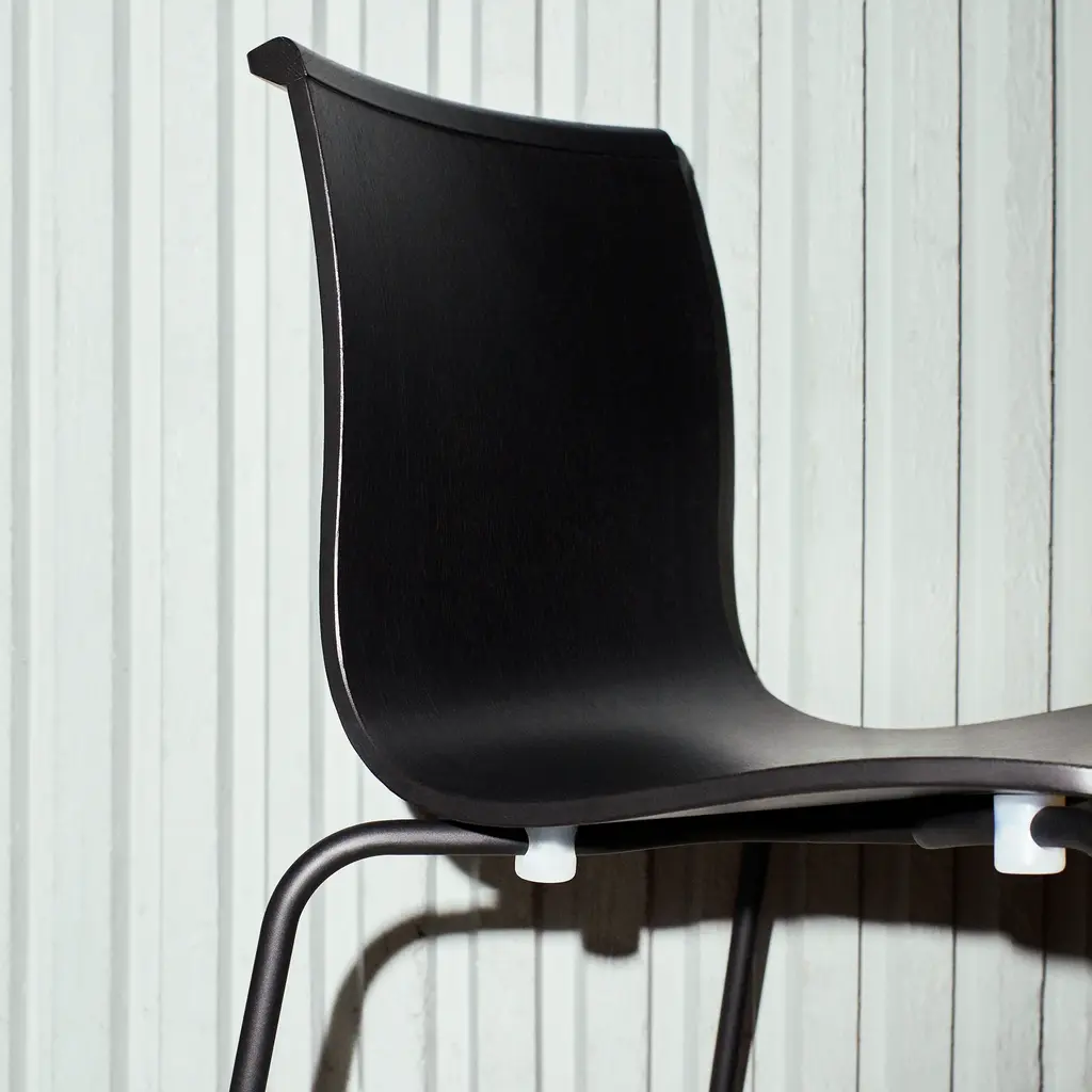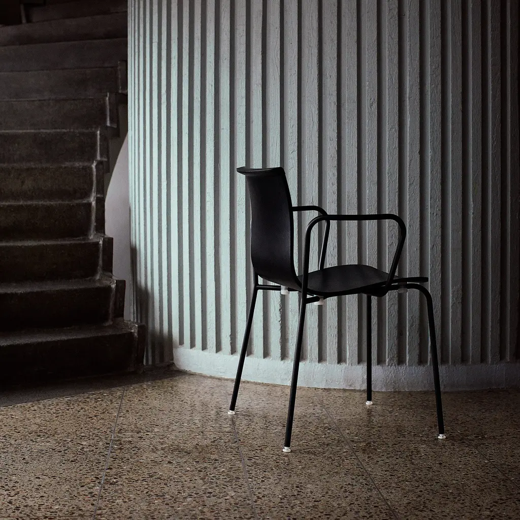 In both armless and armchair models that are stackable up to 12 high, the tube frame Serif adds a clean-lined appeal to Massproductions' take on Scandi molded seating. Designer Chris Martin proffers squared-off contours in layered, glued wood with a bar-like edge across the top that he compares to the serif on a letterform. Besides defining the chair's shape, it also makes it easy to grab for lifting. Metal tubing in black, red, white or chrome complements the wide range of wood finishes and colors.