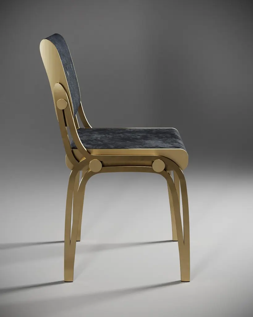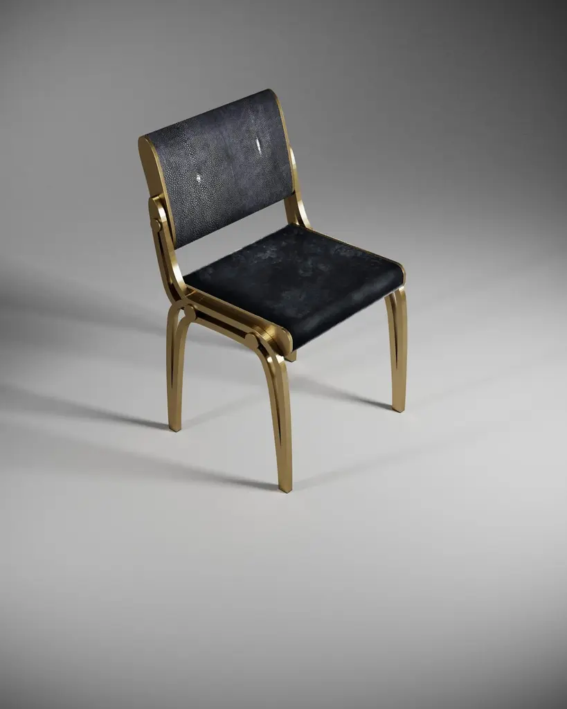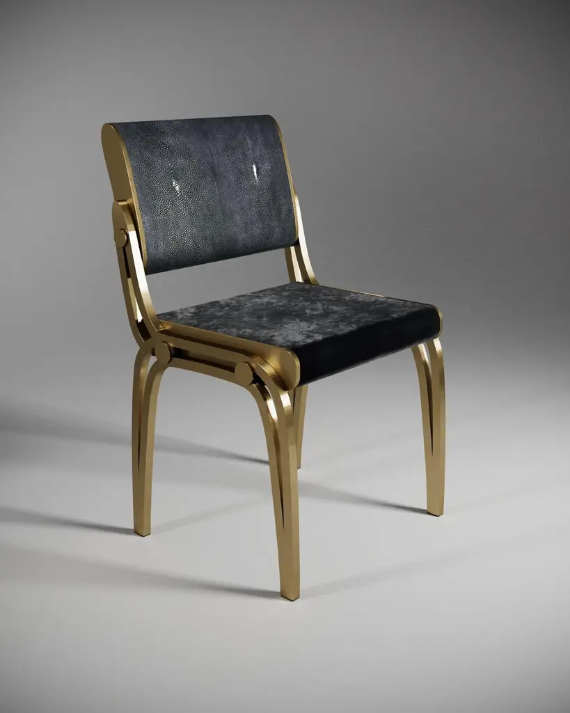The Paris based label has distinguished themselves since their launch, with their iconic use of shagreen mixed with brass and other exotic materials. All furniture is handcrafted by skilled artisans, ultimately making each piece unique, designed in Paris and produced in the Philippines.The Limited Edition Victoria chair by R&Y Augousti is a sophisticated piece that provides comfort, whilst retaining its elegant and luxurious aesthetic. The backrest of this piece is inlaid in coal black shagreen and the seat is upholstered in a dark grey-hue Pierre Frey Velvet, with a bronze-patina brass frame. Available in other finish combos, see images at end of slide. This Chair is a part of a 4-piece limited edition capsule collection by R&Y Augousti, see images at end of slide. The dimensions of this piece are 54 x 53.5 x 89.5 cm All R&Y Augousti pieces are handmade by artisans, ultimately making each piece unique. Wipe clean with soft dry cloth.Acclaimed design duo Ria & Yiouri Augousti have established themselves since the 1990s as pioneers of modern-vintage style through their luxurious Art Deco inspired collections.The Paris based label has distinguished themselves since their launch, with their iconic use of shagreen mixed with brass and other exotic materials. All furniture is handcrafted by skilled artisans, ultimately making each piece unique. All shagreen-covered items should be kept out of direct sunlight, color variants may occur on the stingray and other exotic finishes, but this showcases the Parisian label's commitment to creating authentic luxurious products using natural components.