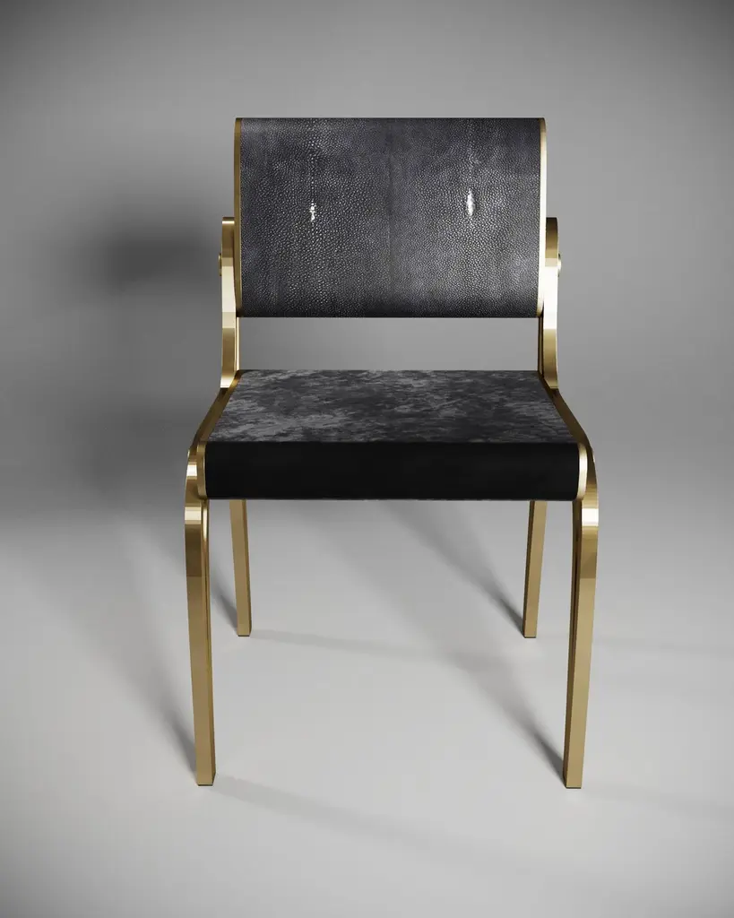 Shagreen Chair With Velvet Upholstery And Brass Accents By R&y Augousti