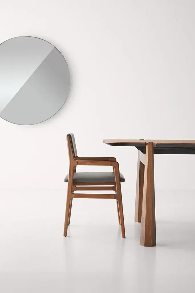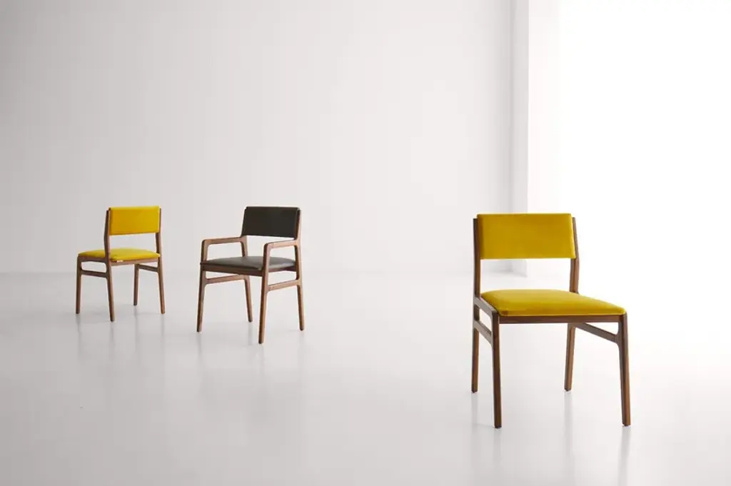 Shanghai is a chair with a solid wood structure, padded seat and back, hand-finished and with a contemporary design.Finishes- Canaletto Havana finish- available fabrics: Eco-leather, Econabuk, Linen, Velvet, Bouclè, Leather