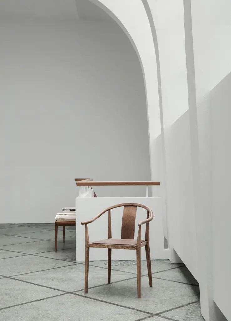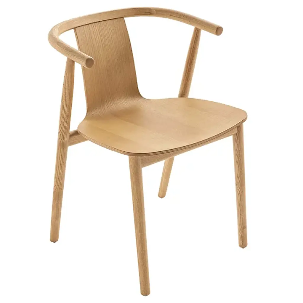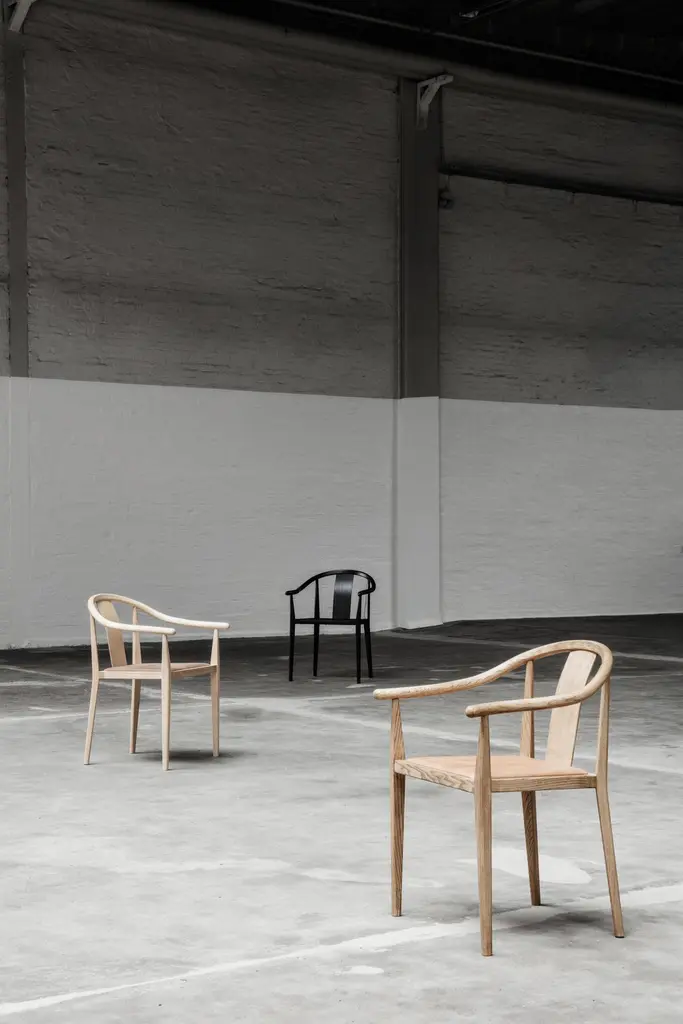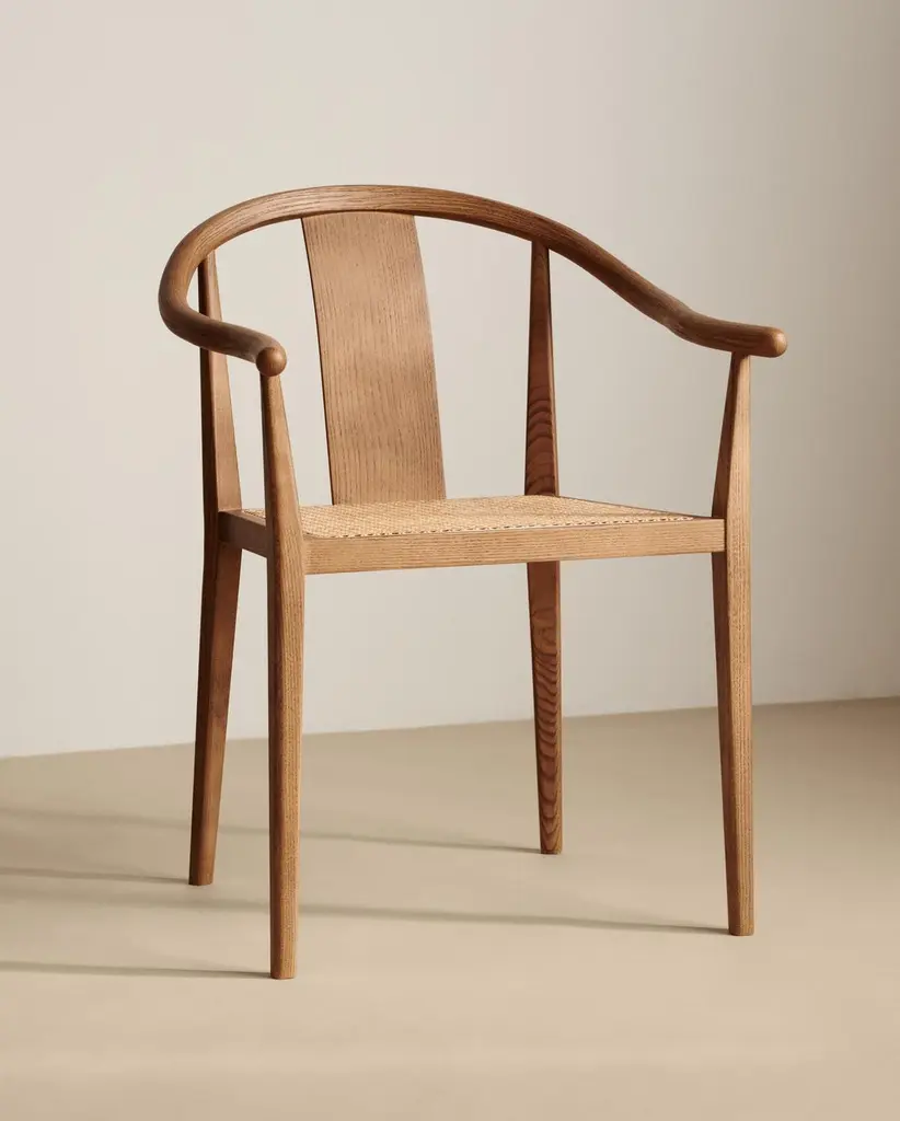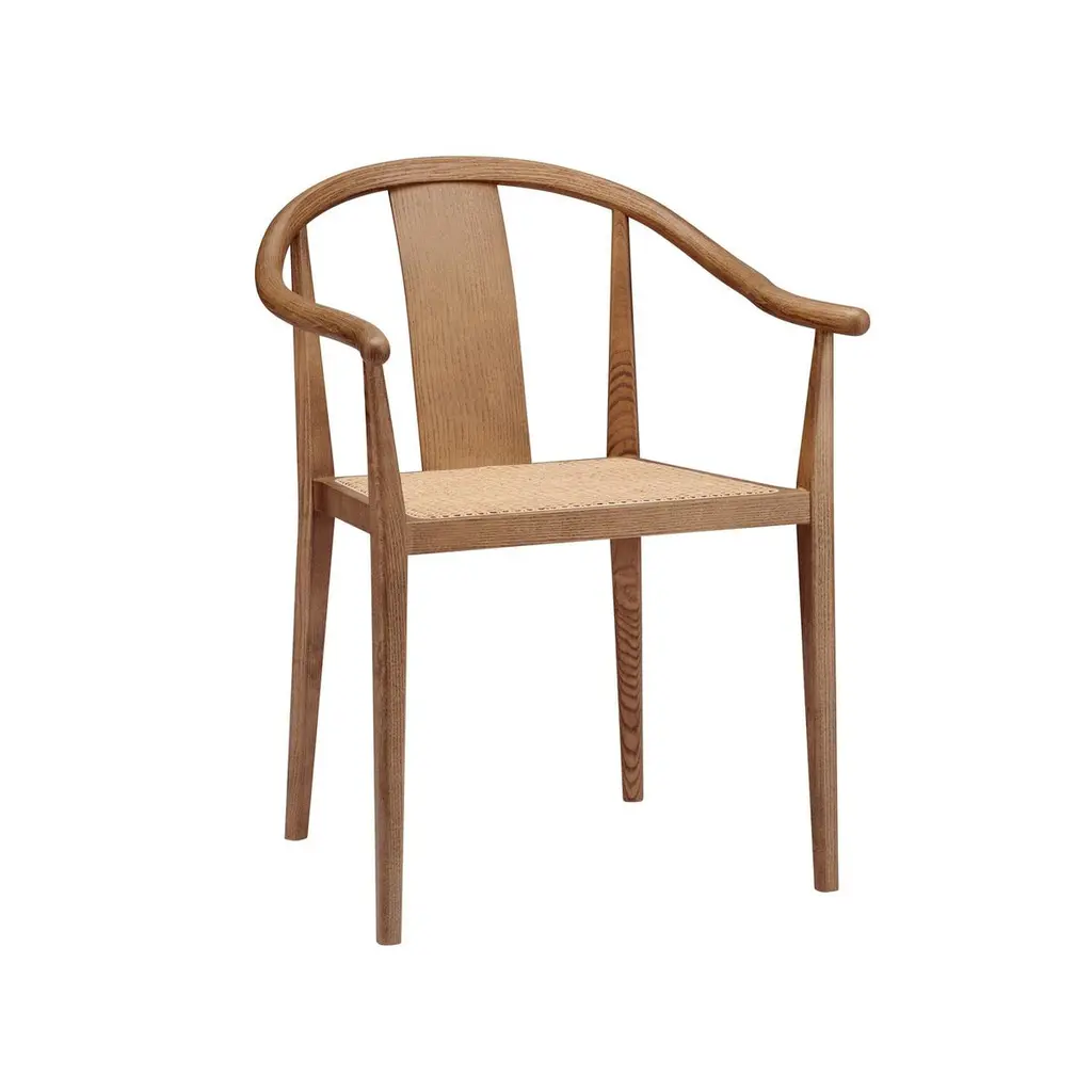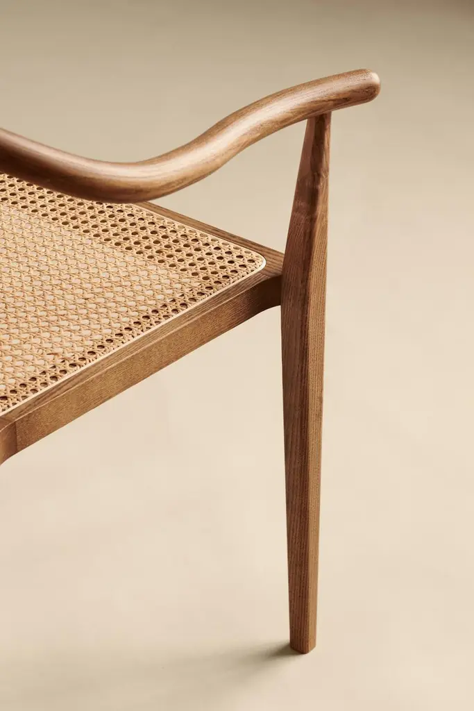 Scandinavian chair 'Shanghai' by Norr11Designed by Rune Krojgaard & Knut Bendik Humlevik, 2011Model in the picture: Frame: Light Smoked OakSeat: Natural RattanAvailable as well with paper cord, french rattan or various upholsteriesDimensions:W. 58,5 cmD. 57,7 cm H. 79,5 cm S.H. 45 cmArm rest 65 cmA modern interpretation of the ancient Chinese Horseshoe Chair. The Shanghai Chair features a steam bent solid ash wood frame and a seat of hand woven paper cord, french rattan or upholstery. The back and the armrest play a central role in the chair’s construction, giving it an iconic shape and firm support. The beauty of the ash wood is an integral part of this chair’s expression, creating a piece of furniture from a simple structure and minimal detailing, uniting Asian and Scandinavian furniture design.Fusing Scandinavian design with Asian aesthetics NORR11’s design language combines the past and the present in a timeless design. The inspiration is found in the nature and raw natural materials which are evident in the collections. The company’s headquarters, design studio and flagship showroom is in the city centre of Copenhagen showcasing the full design universe of NORR11.