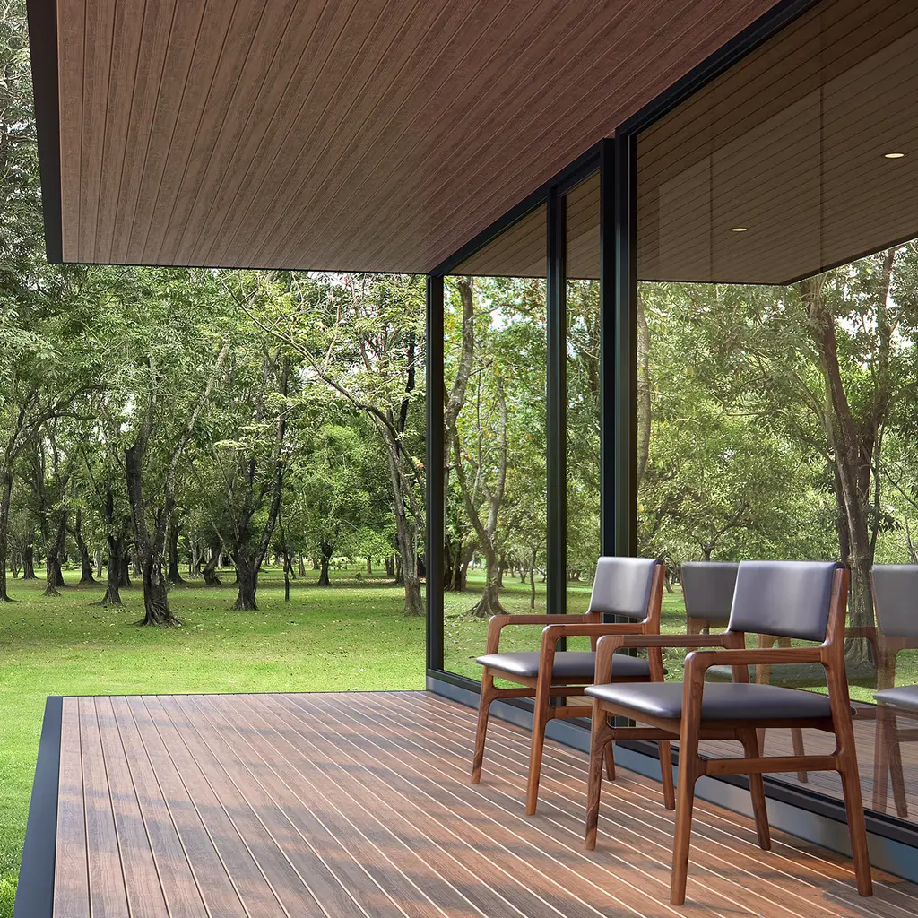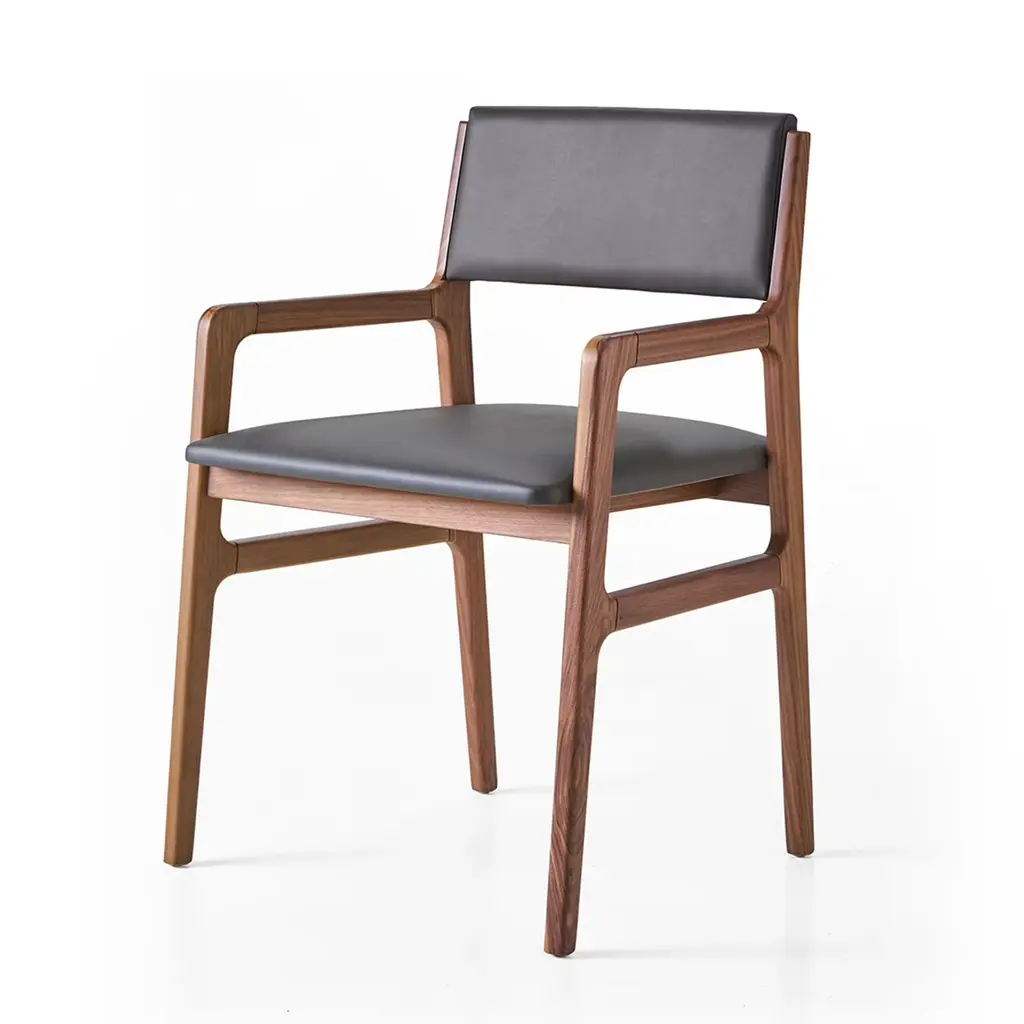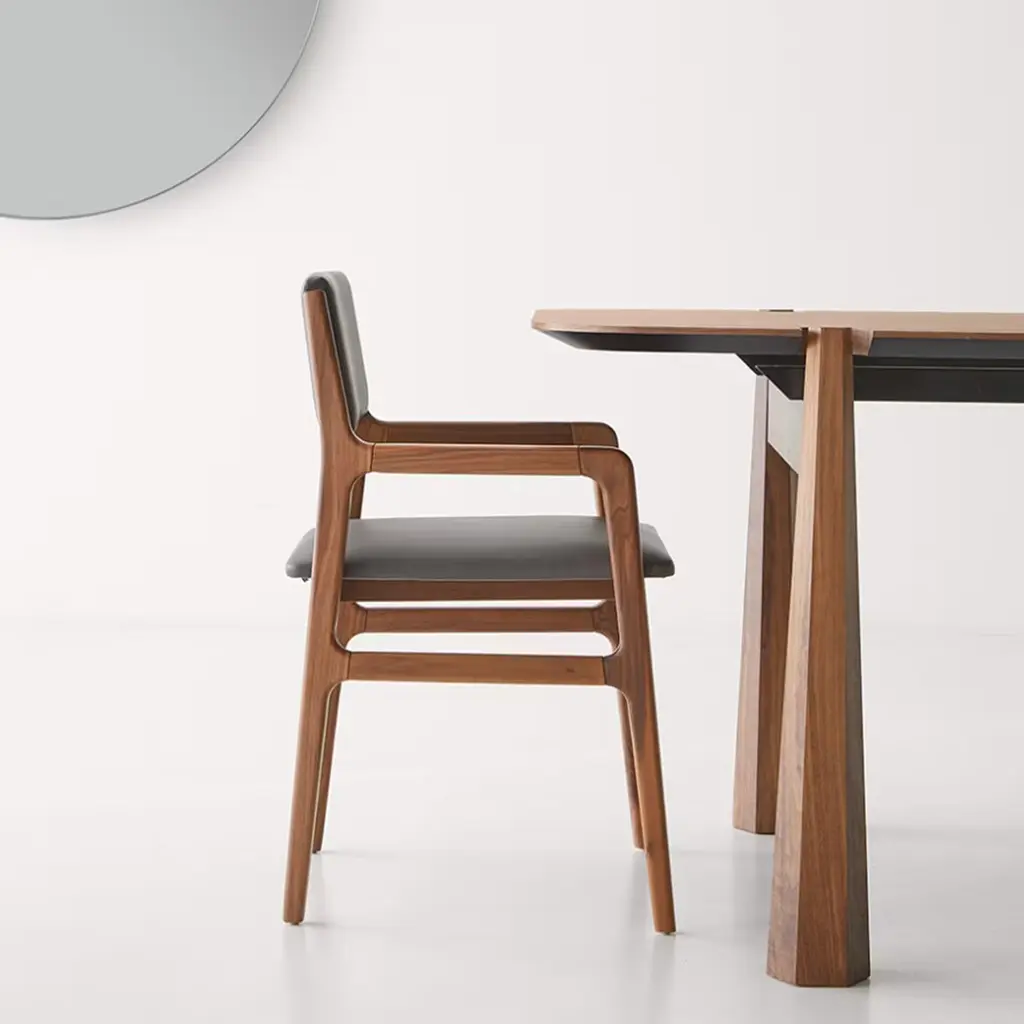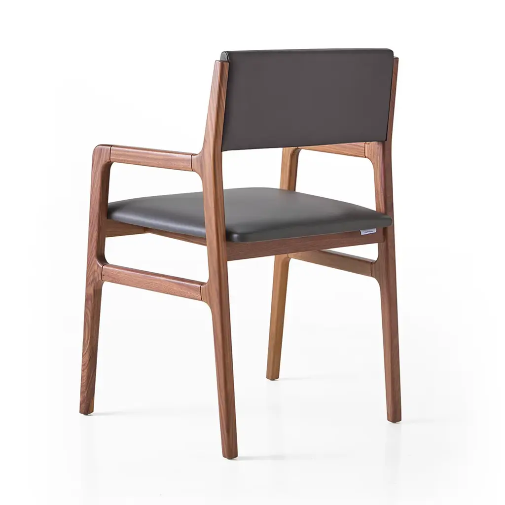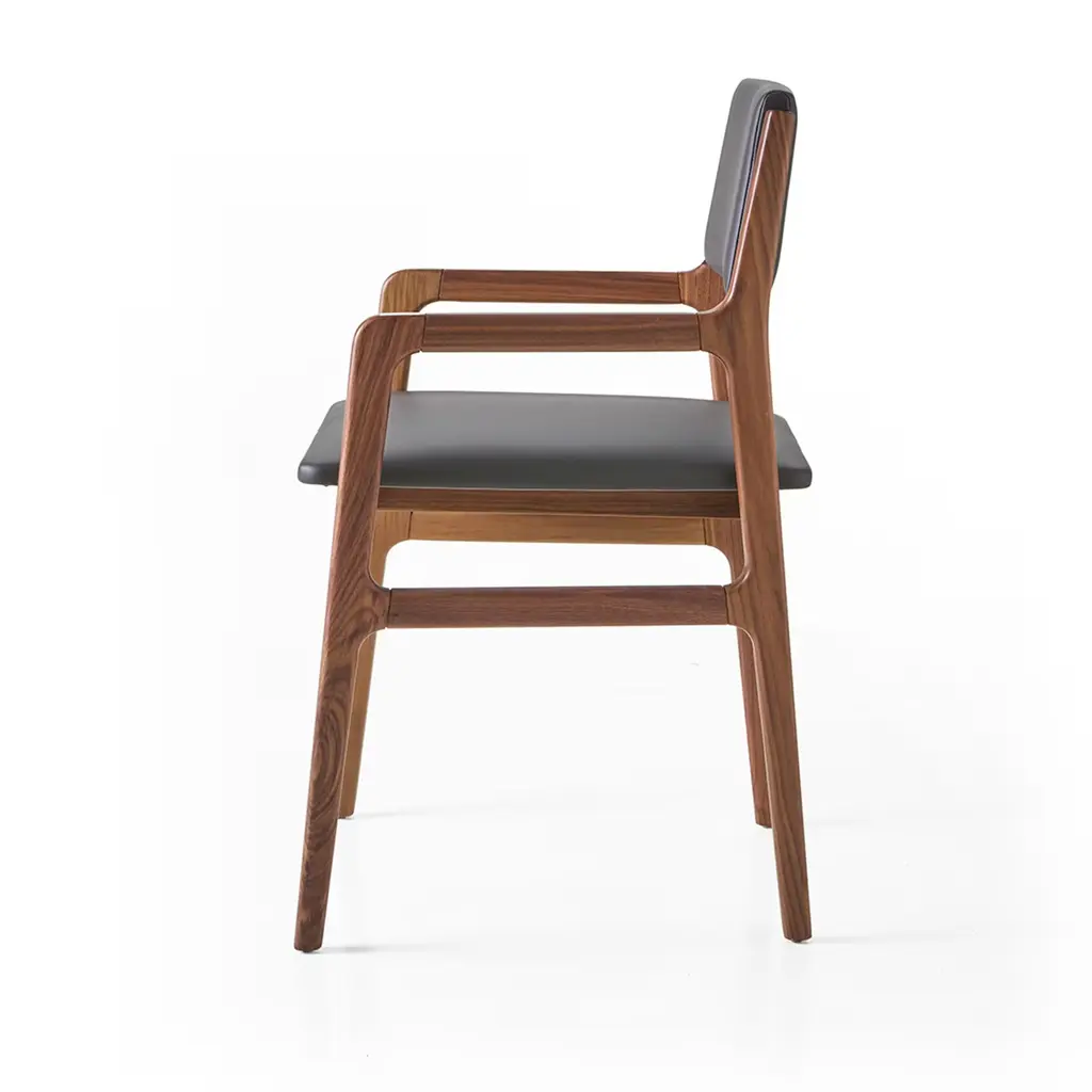 Chair with upholstered back panel and seat, with armrest - Havana finish wooden structure and Econabuk Seta gray upholstery.