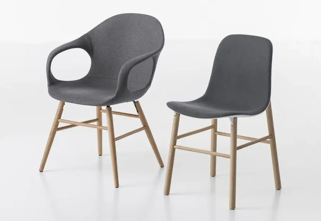 The philosophy of Eva Paster and Michael Geldmacher is based on observing nature and on a profound knowledge of contemporary lifestyles. To create the coupling elements between the structure and base of the Sharky chair, which won the Interior Innovation Award in 2015, the designers were inspired by the lightness and strength of shark fins. The result is a slimline, sinuous yet very hardwearing seat.The Sharky chair, stool with a high backrest and stool with a low backrest are available with wood legs or with painted aluminium legs with visible welded details. The polyurethane structure is made even more comfortable with a padded seat or cushions, available in a wide variety of colours. The option of adding a Lips cushion, designed for outdoor use, adds a touch of customization and extra comfort to these chairs.