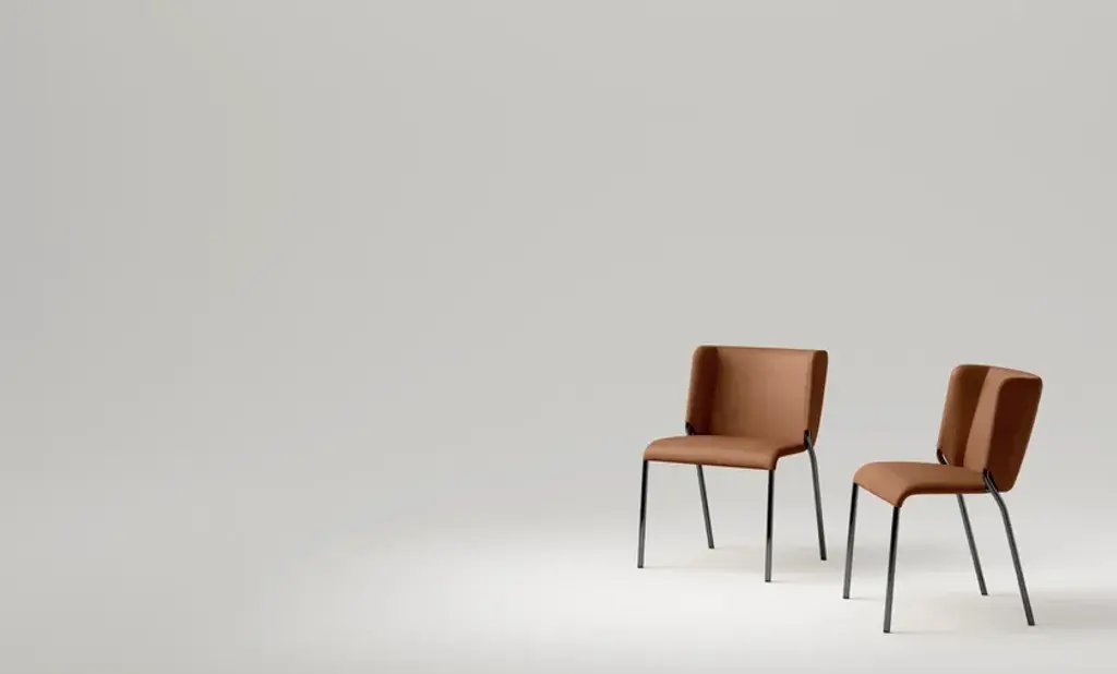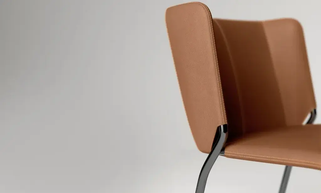 A contemporary design, the She chair is the result of the encounter between technological innovation and artisan processing. Characterized by a structure made of bent metal rod and upholstering finely processed with external stitching granting both technical and aesthetic functionality. Ideal for either domestic use or for contract thanks to its timeless design and great comfort. TECHNICAL INFOChair with rod shaped metal structure of 20mm, available in following finishes: polished chrome and polished gunmetal or embossed matt black, white or anthracite grey lacquered. Upholstered seat and backrest in leather or eco-leather.