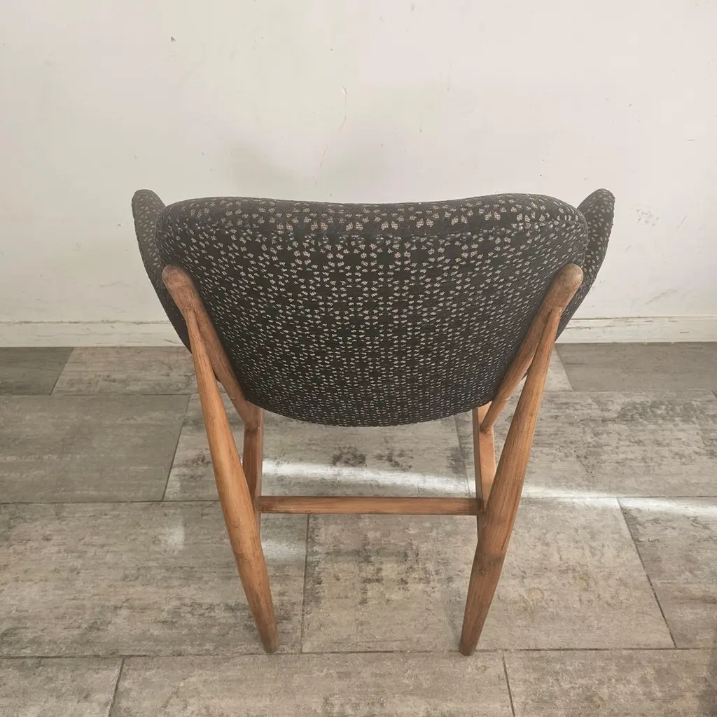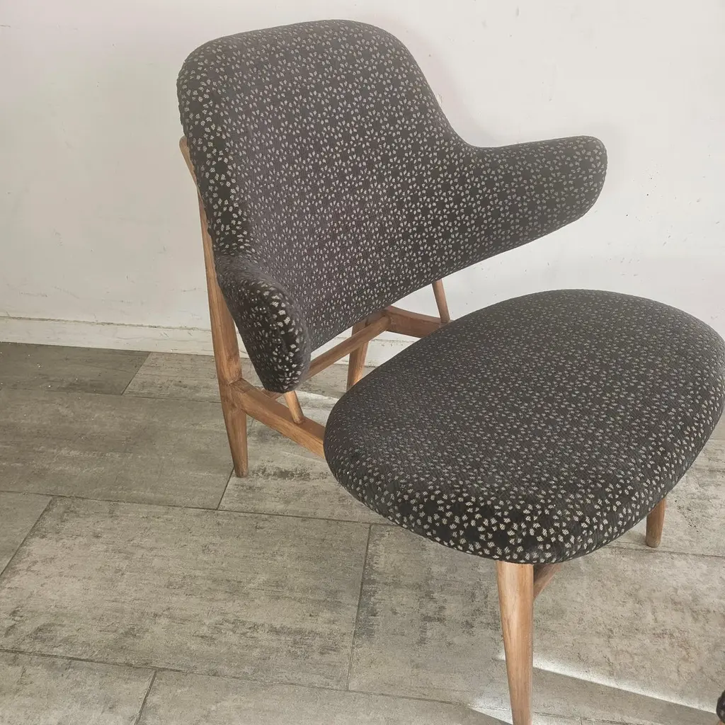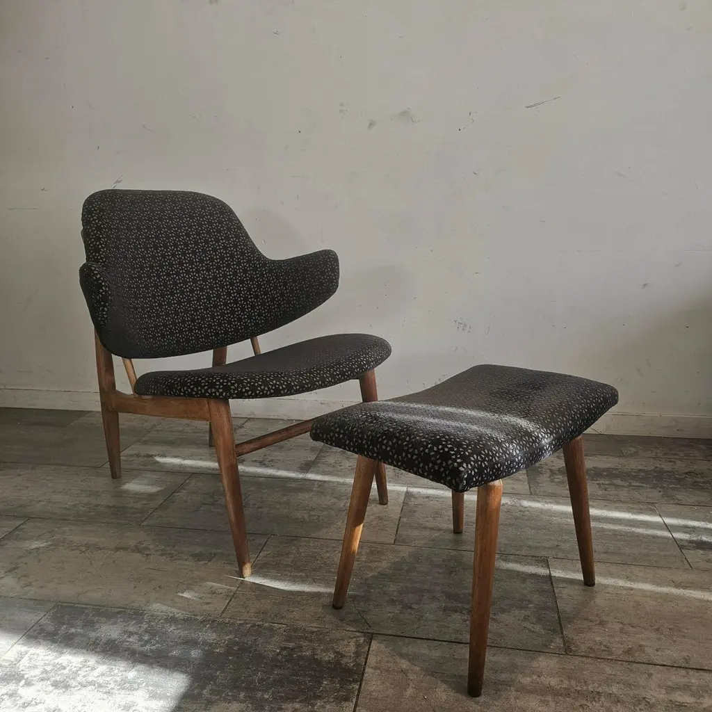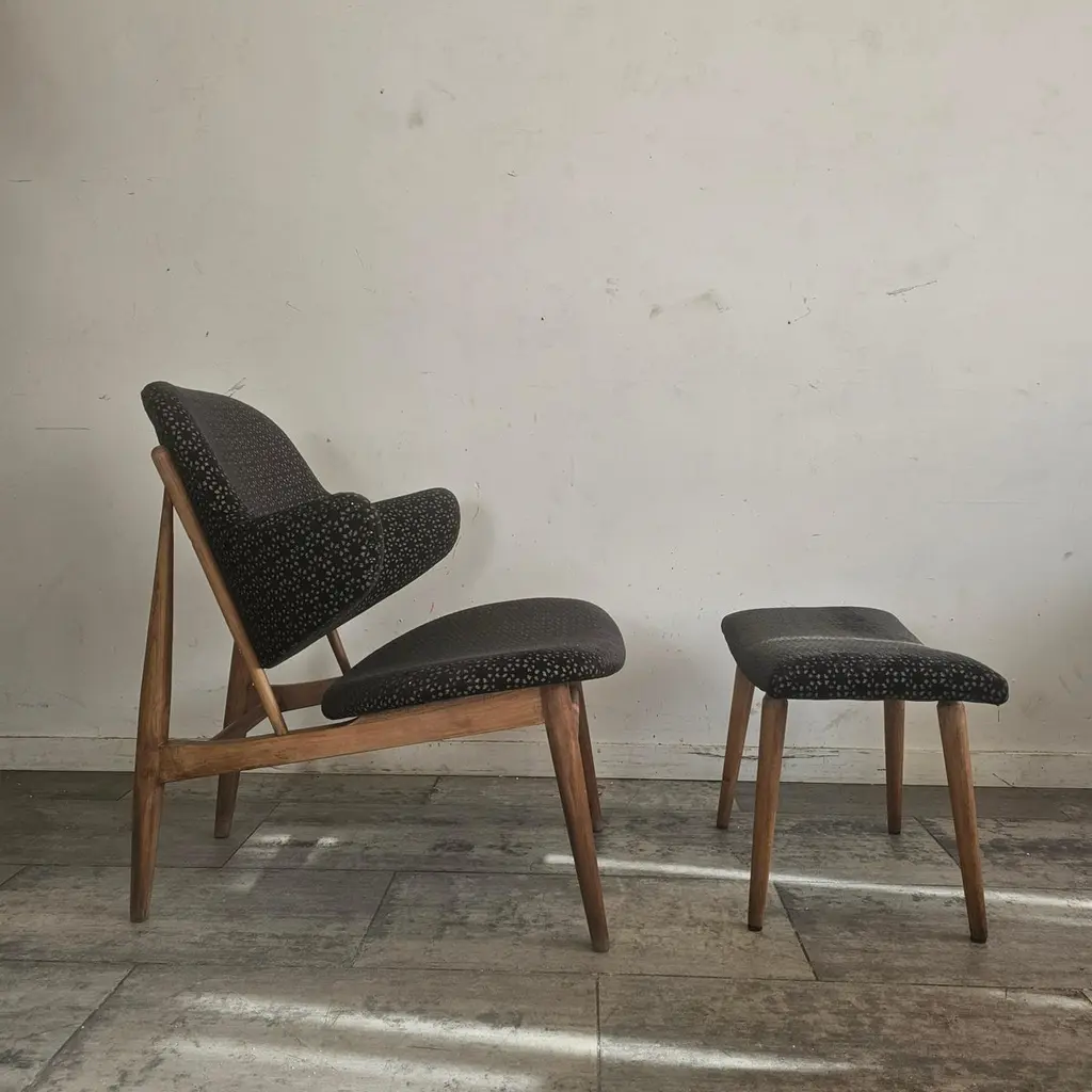 The Kofod Larsen Shell Chair, designed by Danish designer Ib Kofod Larsen in the 1960s, is a striking piece known for its unique organic shape and elegant lines. The chair features a sculpted wooden frame and a seat that mimics the contours of a shell, hence the name.Crafted from high-quality materials, it often showcases a combination of wood and upholstered seating for added comfort. The design reflects the principles of mid-century modernism, emphasizing both aesthetics and functionality.
