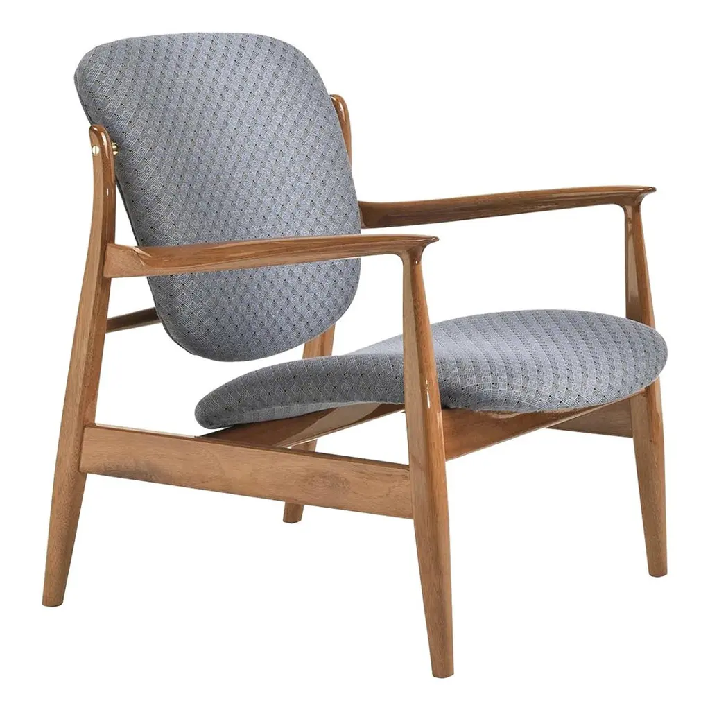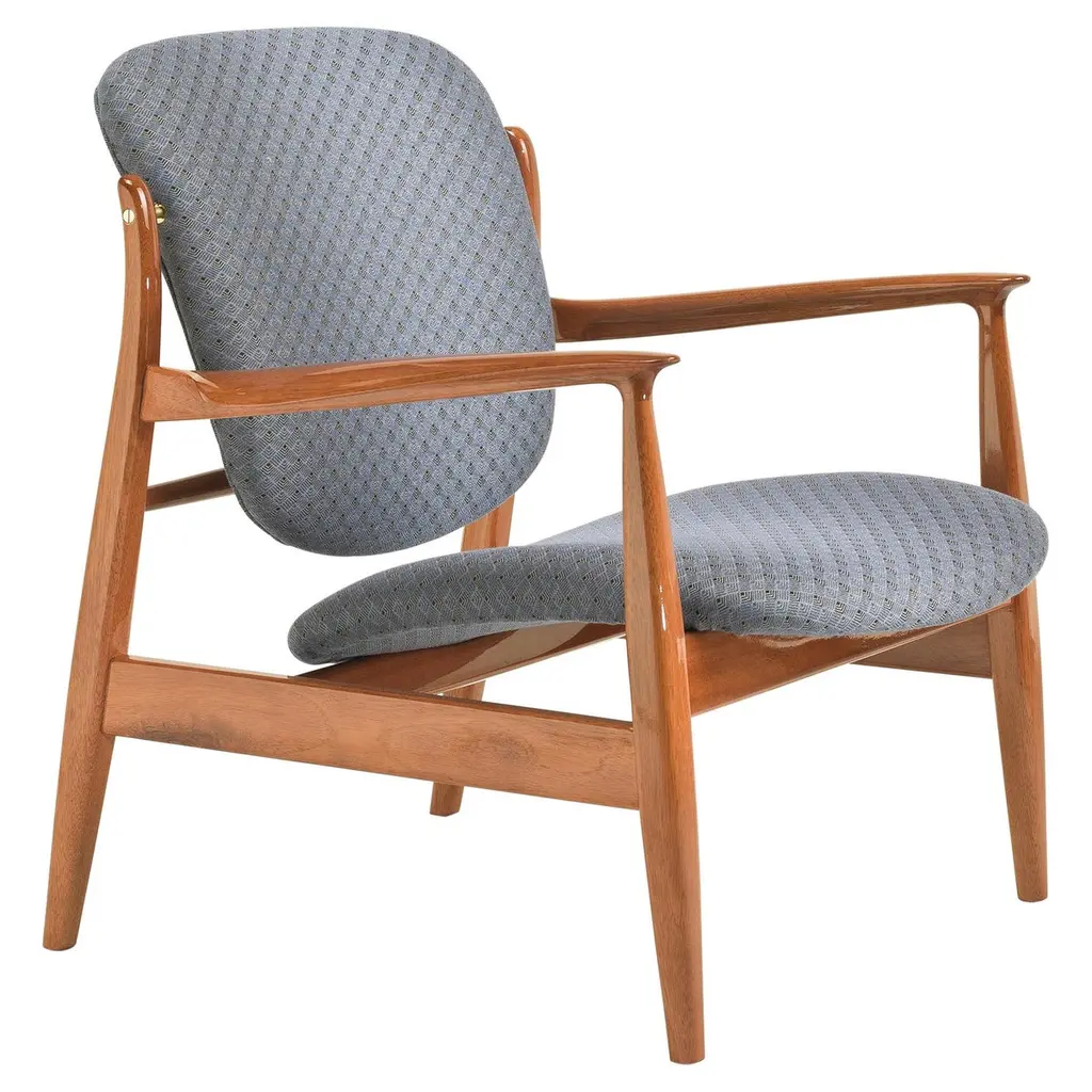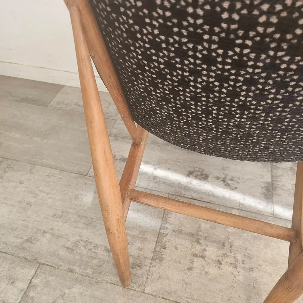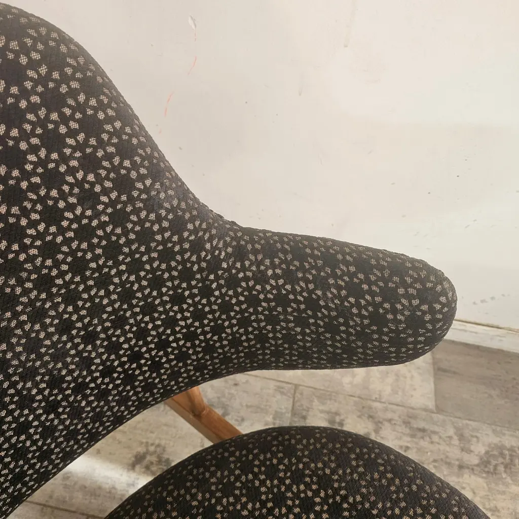 The Kofod Larsen Shell Chair, designed by Danish designer Ib Kofod Larsen in the 1960s, is a striking piece known for its unique organic shape and elegant lines. The chair features a sculpted wooden frame and a seat that mimics the contours of a shell, hence the name.Crafted from high-quality materials, it often showcases a combination of wood and upholstered seating for added comfort. The design reflects the principles of mid-century modernism, emphasizing both aesthetics and functionality.