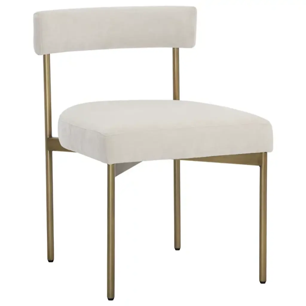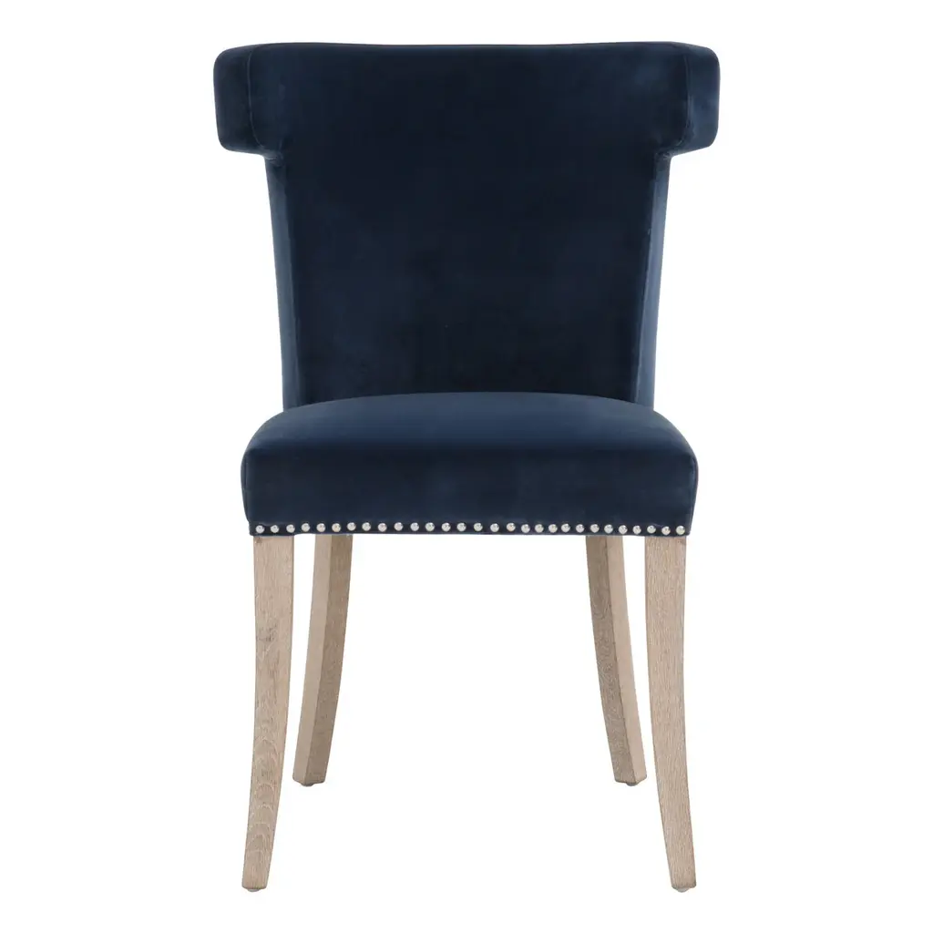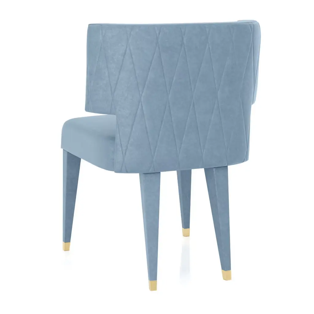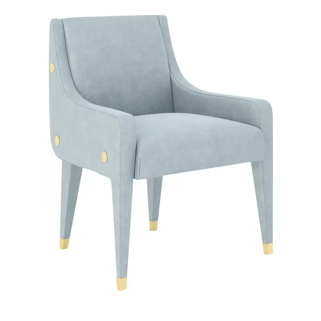 A cozy and welcoming backrests is the focal point of this polished item's design. The delicate light-blue hue of its fabric upholstery finely complements the restrained lines featured in this wooden chair that, padded with polyurethane foam, provides with extraordinry comfort. The 49cm-high and square seat sits atop four tapered legs with brass-finished metal details. This sophisticated chair can also be requested wih a leather upholstery or different metal finishes, please ask the Concierge for options and pricing.