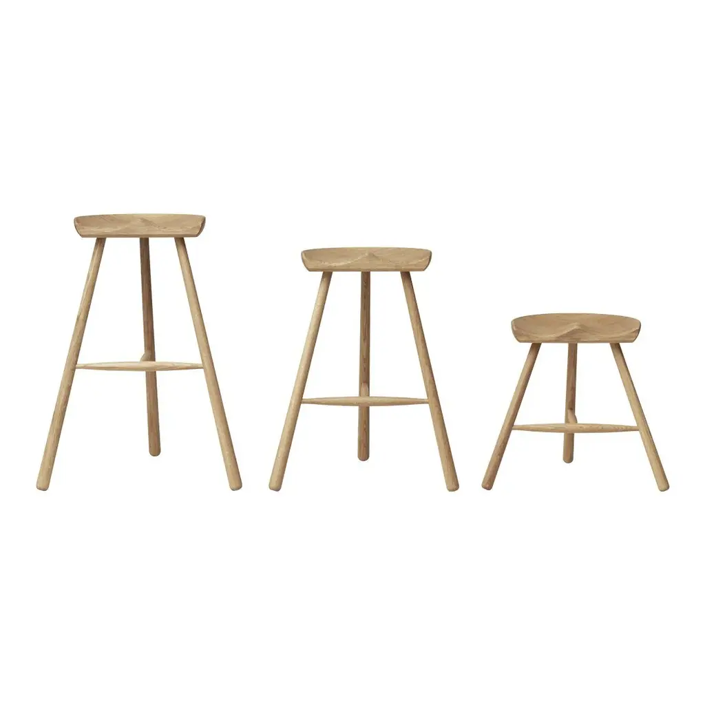 A true classic made in Denmark since 1936 – where it still to this day is produced by our local joinery.The seat is shaped out of one large solid piece of wood and because of the variations in the woodgrain, every Shoemaker Chair is completely unique.Together, the turned legs and the stabilizing T connection create a harmonic and aesthetic piece of furniture with strong references to the Nordic design universe. The construction may look rather simple, but it is technically difficult to master. The solid piece of wood has to be carved very accurately to ensure the highest comfort. At the end of the process every model is finished by hand before going into a three-step process of staining or oiling surface treatments. "We have tirelessly optimized the chair since the early stages, adjusting minor aspects year after year – both in the production flow and in the finished product. Among other things, the T legs were added for extra stability and the seat was re-shaped and rounded so that if the chair falls the rounded profile would protect the top-line from breaking."- Lars Werner, 2nd generation of the Werner Family