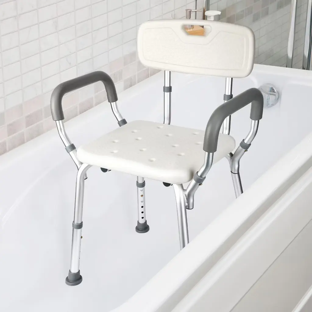 Shower Bench, Adjustable Height, Shower Chair With 550 Lb Capacity For Elderly And Disabled,white Guardrail