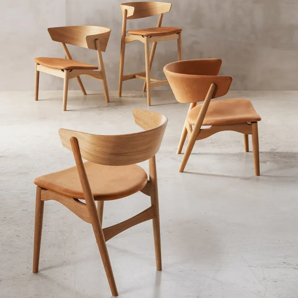 The unique lounge chair takes its inspiration from the ageless No 7 dining chair designed by Helge Sibast in 1953. Carrying on the high-quality craftsmanship and design heritage from his grandfather, Ditlev Sibast designed the lounge chair as a respectful and endearing transformation of the original dining chair together with his wife, Anna, and in cooperation with New York-based designer Marcus Hannibal. The kinship with the dining chair is emphasised by the large moulded backrest and the gently tapered back legs. Other key qualities of the design include the laid-back comfort and simple expression. The lounge chair descends from the timeless beauty of the Danish Modern movement and is a bold and extraordinary design made with the fundamental attention to detail that runs in the Sibast family.