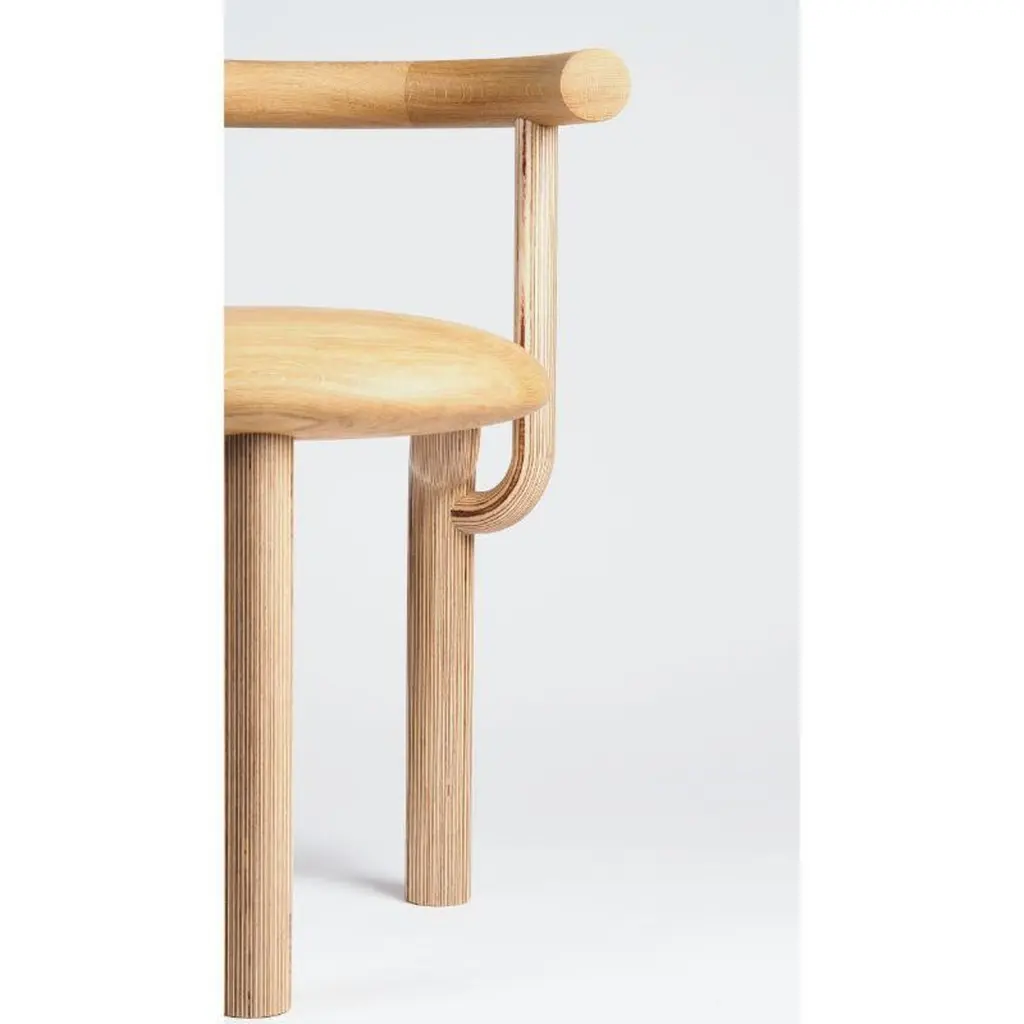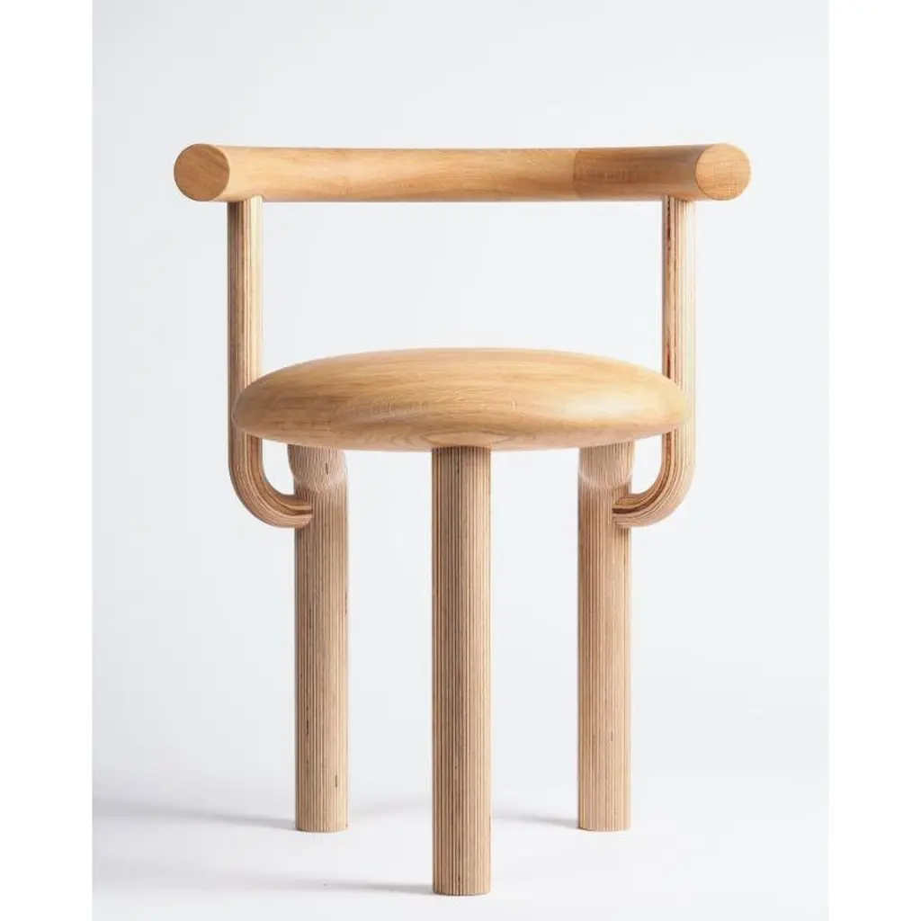 Sieni chair by Made By Choice with Michael YarinskyDimensions: 40 x 40 x 65 cmMaterials: Solid oak, birch plywoodAlso available: Natural oak / painted black Sieni, meaning mushroom in Finnish, is a collection of furnishings for flexible use in the home, office, or hospitality setting. The forms in the series allude to fungal structures - stems, hypha, caps, and gills. We invite the pieces to take root in space and spread their atmosphere. Curiously soft and hard at the same moment, the pieces beg you to to be handled.About Made by Choice: Nordic Happiness. Nordic Happiness is our grand theme and guiding star. Studies show that Nordic people are among the happiest on Earth. Nordic happiness is composed of authentic values and sustainable choices. The vision of Choice is based on the added value of collective creation while promoting sustainable Nordic values through authentic design. Rooted in the traditions of Finnish woodworks, Made by Choice is a creative powerhouse of collaborative thinkers, believers and makers, establishing a global brand for the 21st century. Committed to producing durable, bold and innovative designs, we combine contemporary woodworking methods and modern technology. Halikko is home to our 4000 square metre campus where we turn abstract concepts into tangible objects. Our team in our office in Helsinki coordinates all operations and installations. Made by Choice's agile, purpose driven approach means all new products are developed on demand, for a specific project and need, and carries the authentic story of it's reason of existence. Our products are developed and manufactured at our own factory in south-western Finland by some of the best craftsmen in the world. Choice is inspired by heritage and Nordic urban lifestyle. We are driven to explore the boundaries of our discipline to create new narratives. Choice collaborates with leading designers and ambitious interior architects on site-specific projects to create new urban spaces.Choice was founded by Lasse Laine, Sebastian Jansson and Niclas Ahlström – based on the common vision and mutual values to create a distinctive, value-driven brand and a new design heritage.
