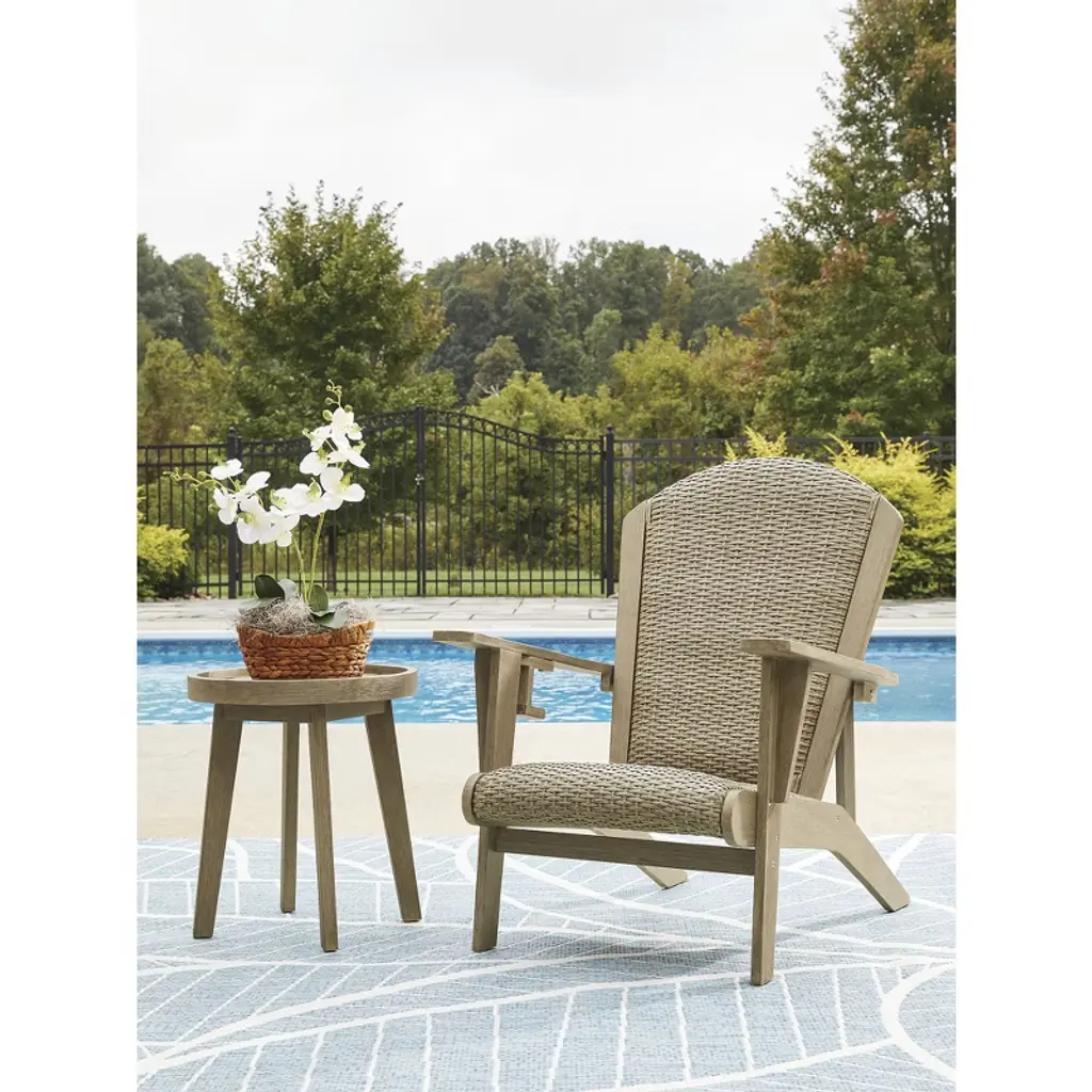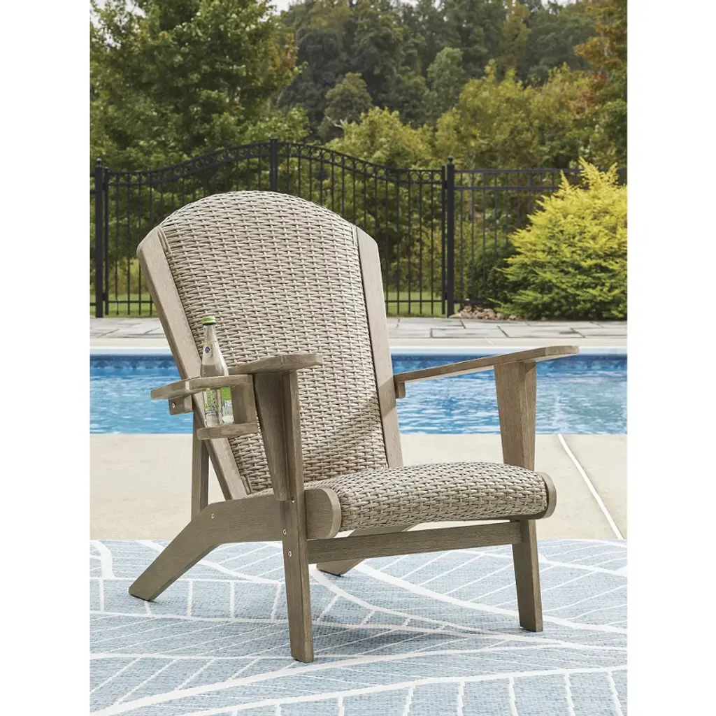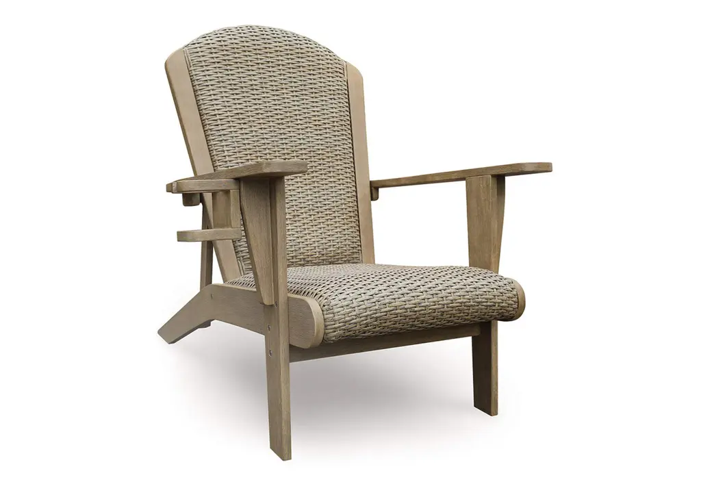 Signature Design By Ashley Coastal Reef Adirondack Chair - Antiqued Eucalyptus Wood With Handwoven Resin Wicker, Beige
