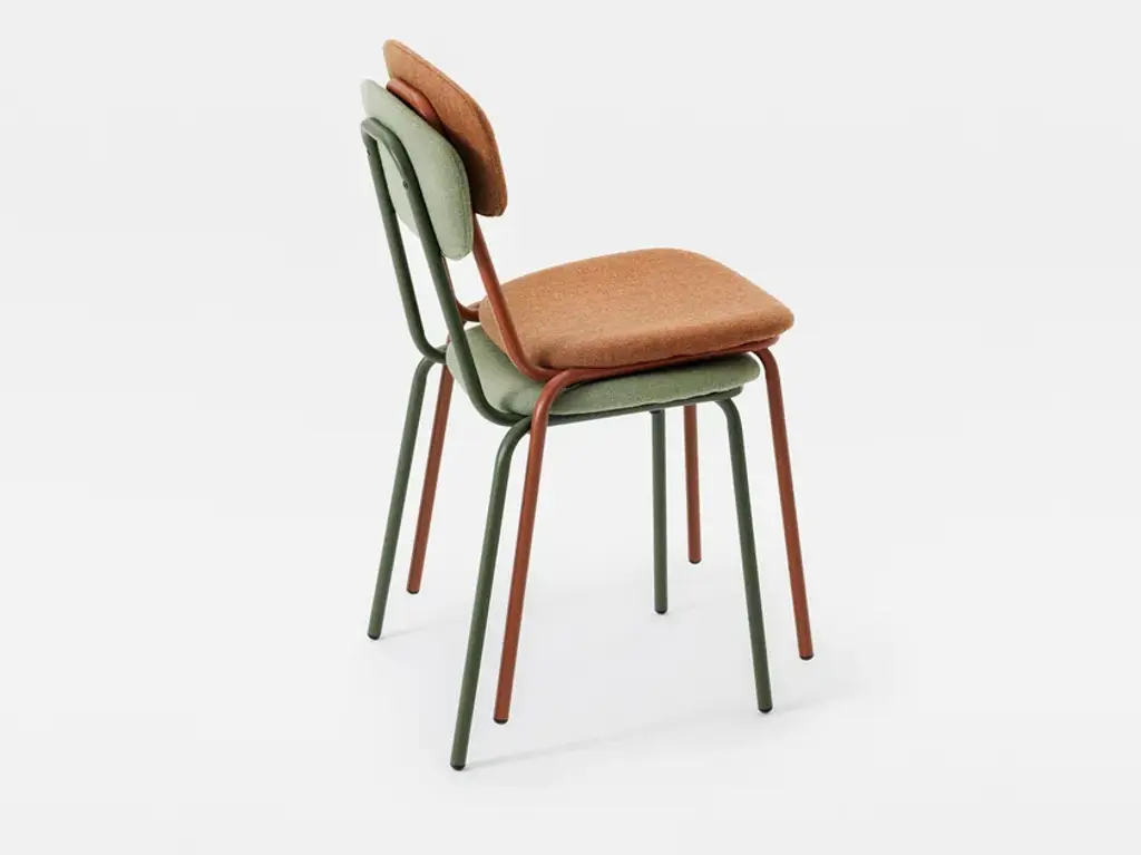 SIMPLE SOFT 107 I is an upholstered chair that combines the simplicity and essentiality of shapes with lightness, comfort and practicality.The strong connotation to the chairs of the Seventies combined with the industrial style that characterises it makes it suitable for both modern and, at the same time, classic environments.Stackable, Simple Soft is a seating collection ideal for cafés, bakeries and restaurant but also for break areas and home.Simple Soft 107 I è acquistabile in box da 4 sedie.