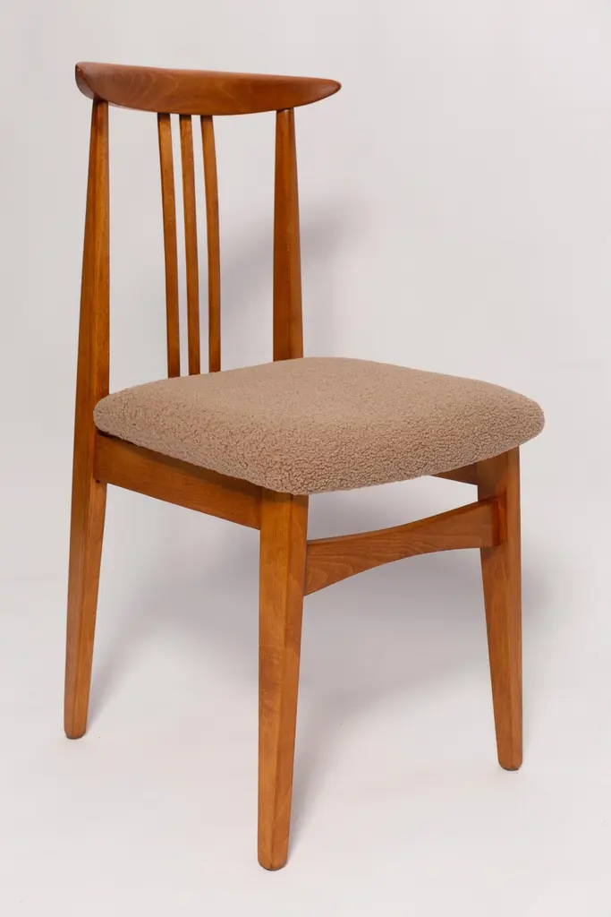 Six Mid-Century Latte Boucle Chairs, Medium Wood, M. Zielinski, Europe 1960s