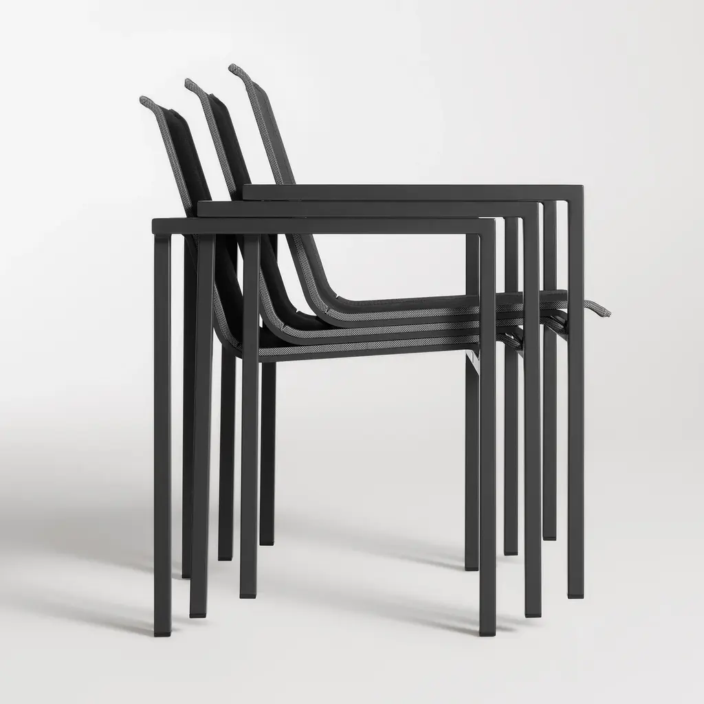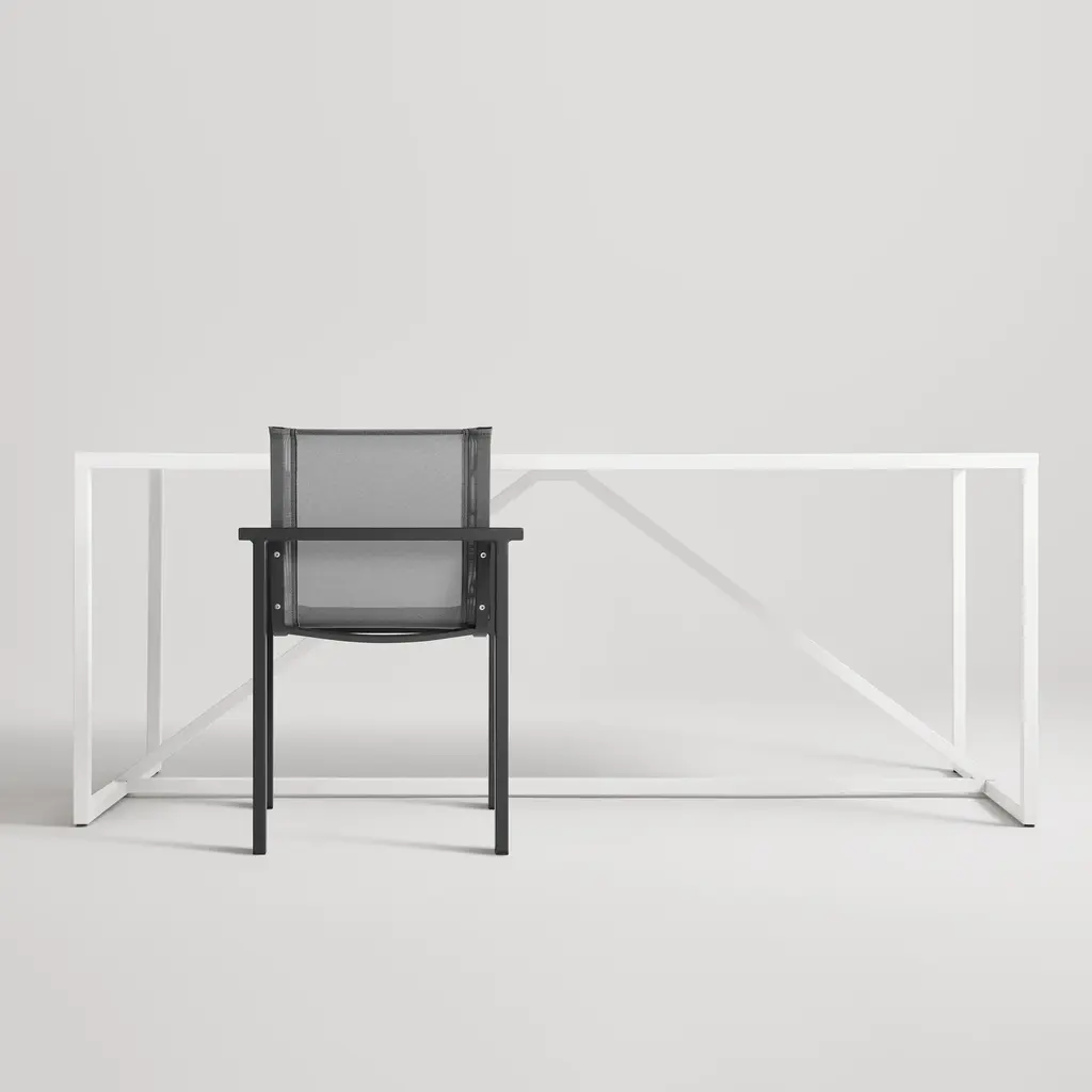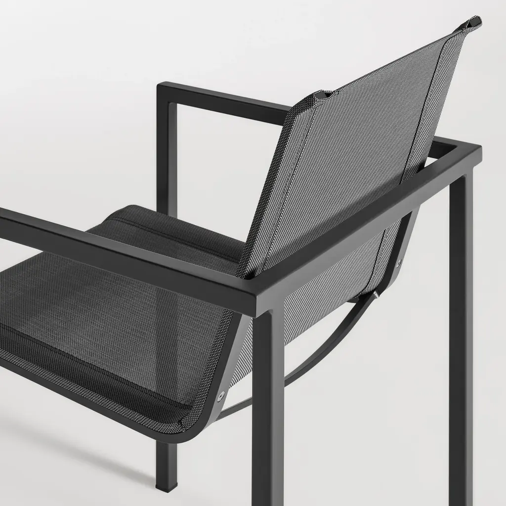 Crisp minimal powder-coated aluminum and Batyline textile. Clean lines designed to weather the elements.