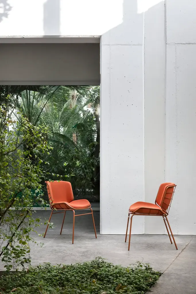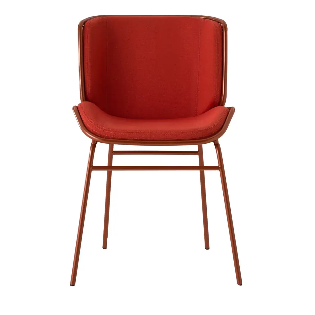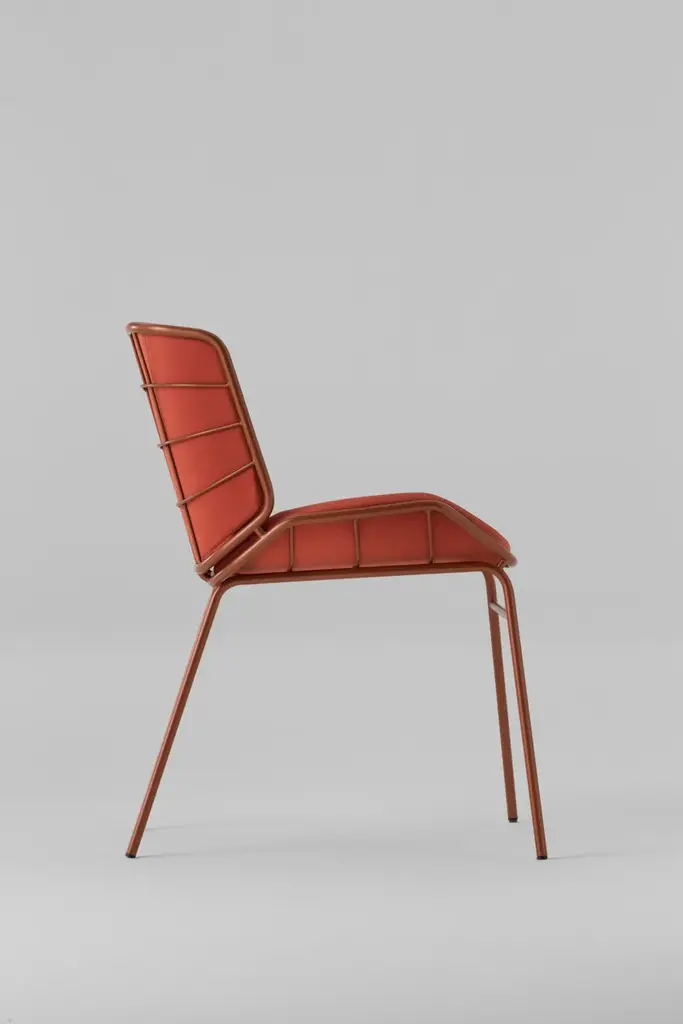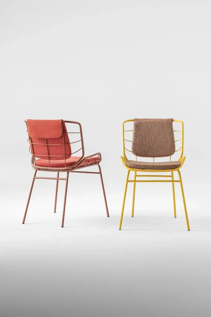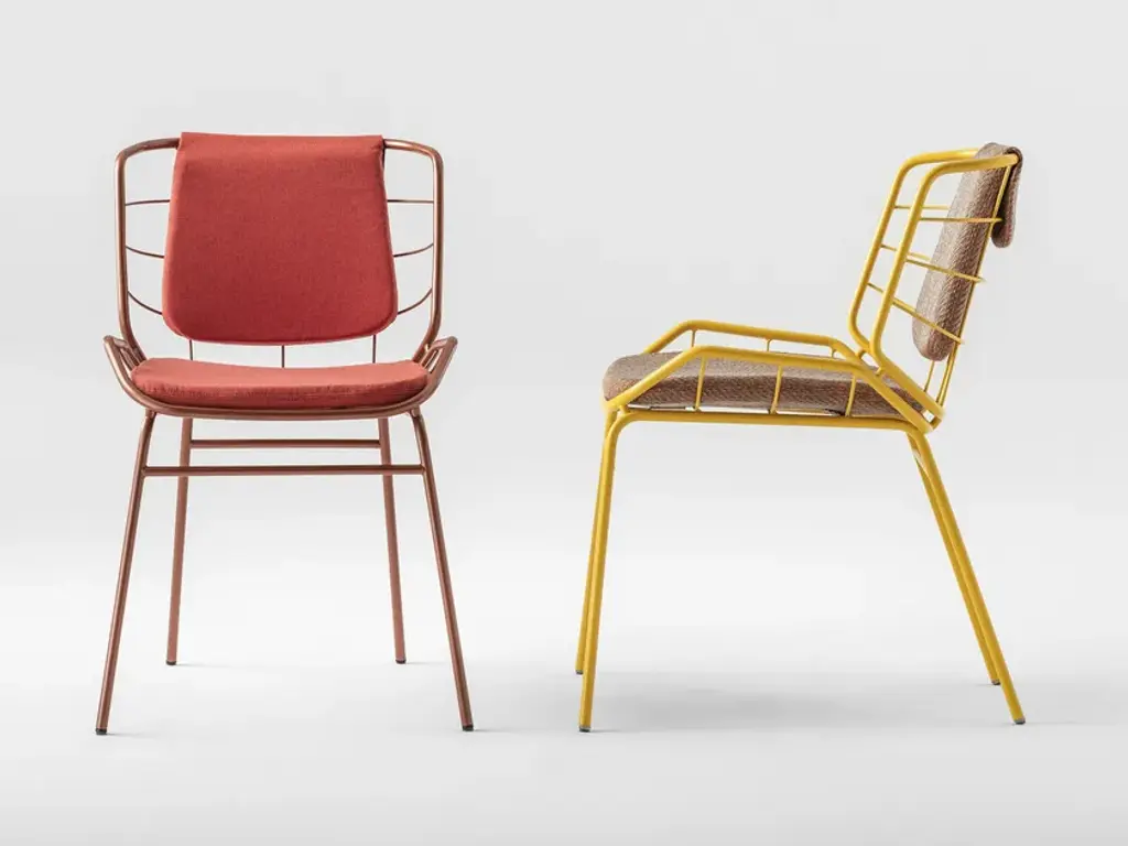 Chair for living, restaurant, bar, hotel, house, terrace. Metal base lacquered and upholstery seat , for indoor and outdoor.