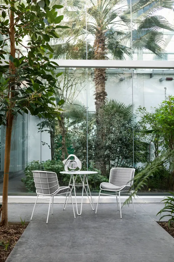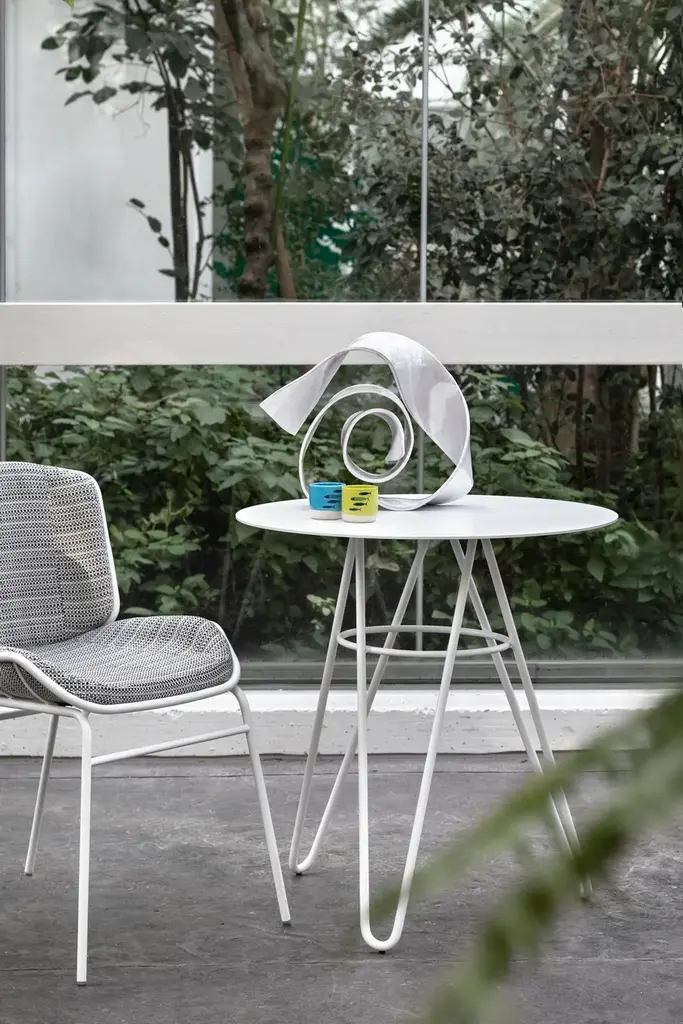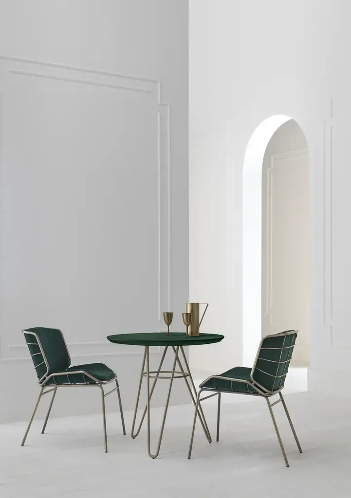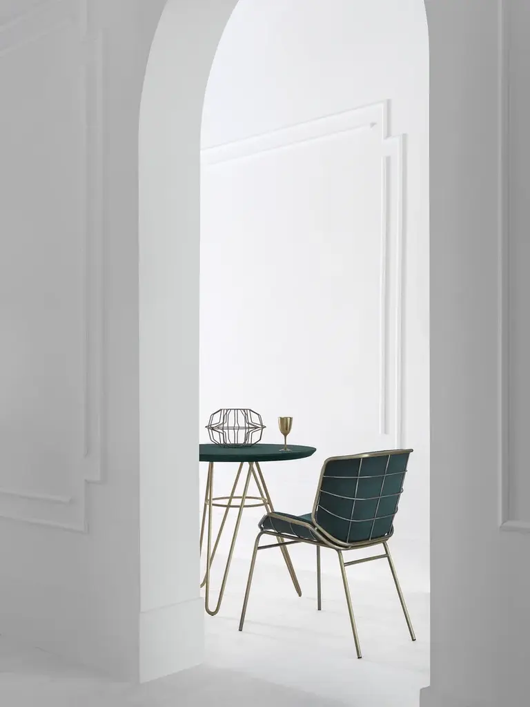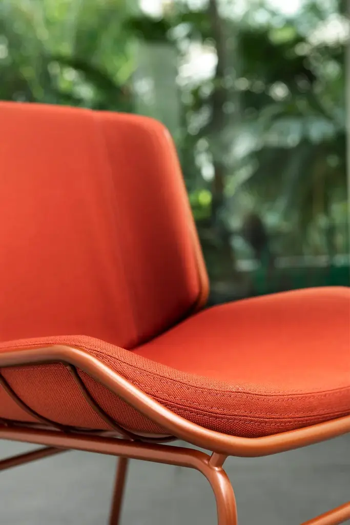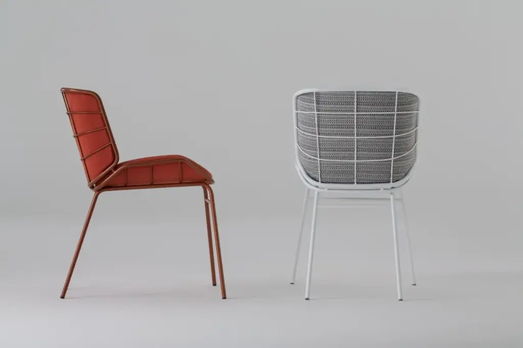 Chair for living, restaurant, bar, hotel, house, terrace. Metal base lacquered and upholstery seat , for indoor and outdoor.