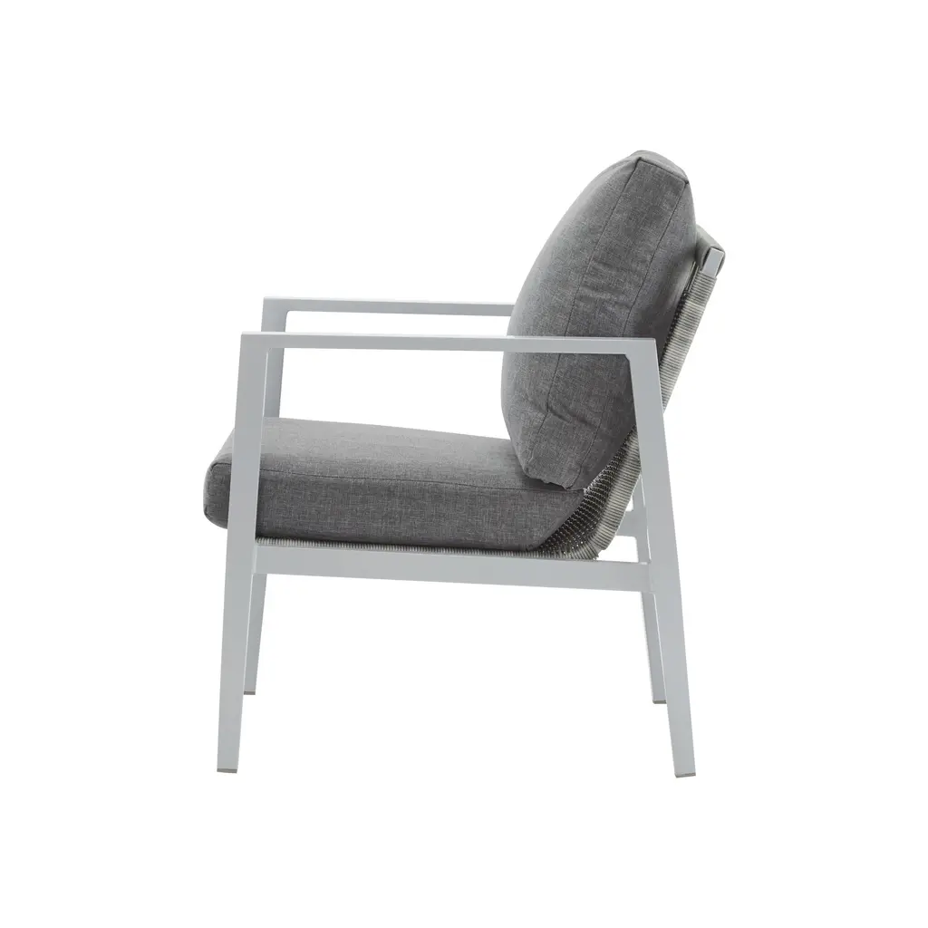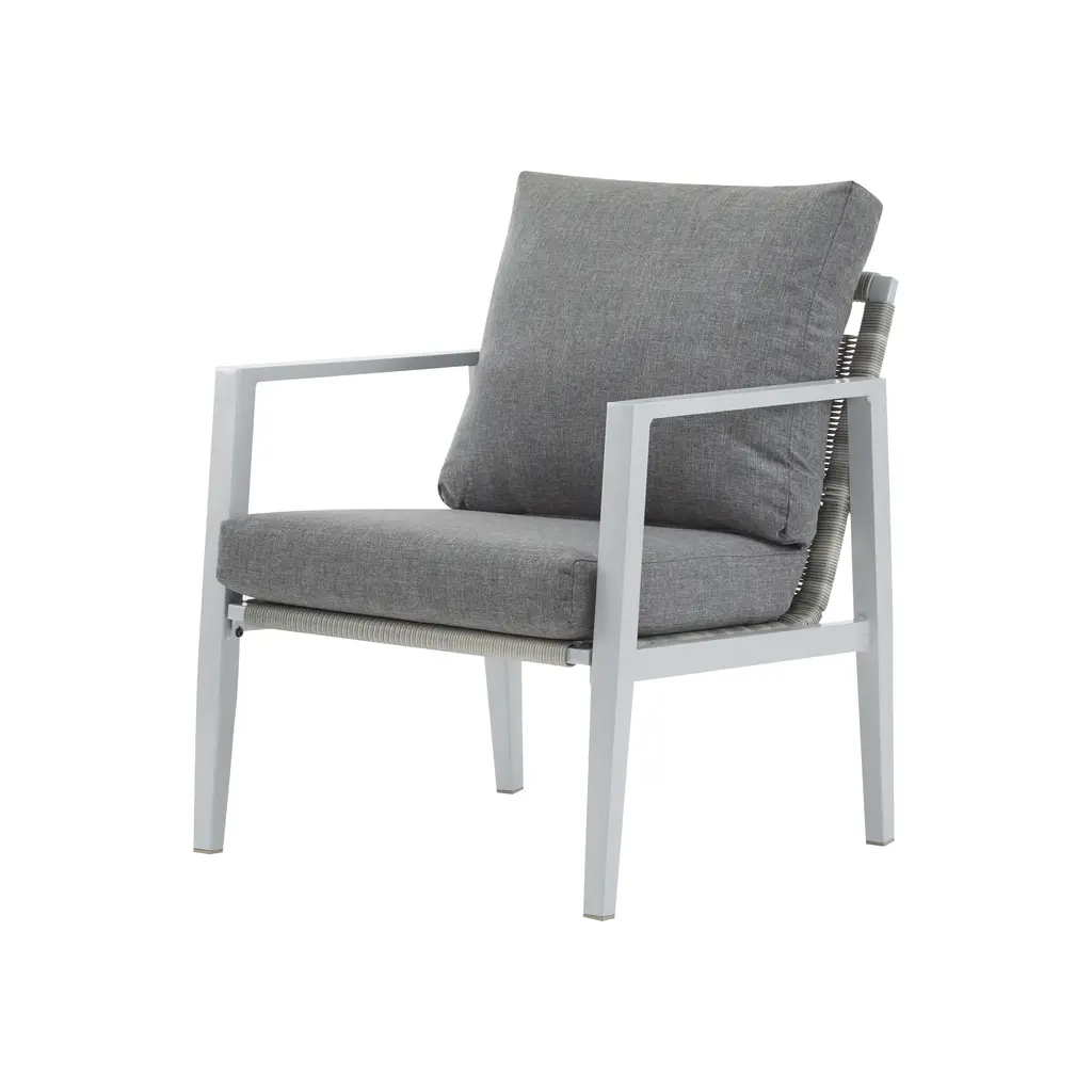 Sleek Aluminum Lounge Chair With Rope Accents - Gray,silver+white