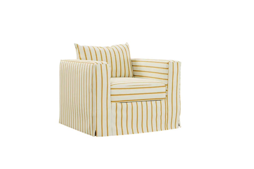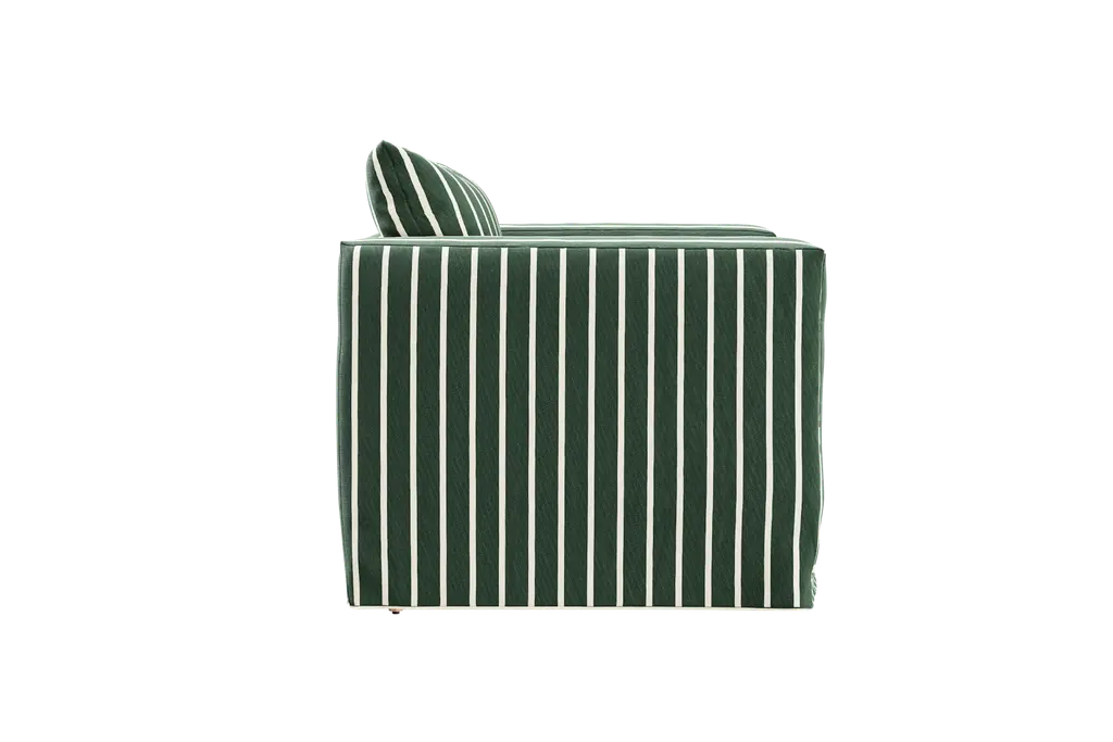 Our full-frame slipcovers boast a seamless, single-piece design that envelops your seating and securely attaches at the base. Enjoy easy removal for cleaning without compromising the original upholstery's aesthetic appeal. Available in an all-natural hemp that is smooth, breathable, and linen-like, or a striped hemp blend that combines the durability of hemp with the softness of cotton. The green stripe brings a fresh, organic vibe, while the yellow stripe adds a cheerful touch of sunny elegance.Includes: Frame Cover, Seat Cushion Cover and Back Pillow Cover. Items are made to order and ship within 4-6 weeks. All Repair Don't Replace Components are Final Sale.