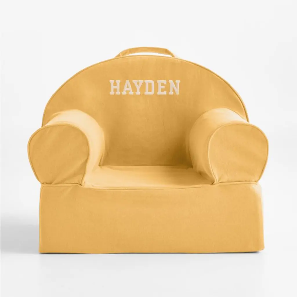 The comfiest seat in the house? Meet our livable and lovable Nod Chair, designed to lounge and look great in any room. With just enough bounce and sized just right, this fan favorite has a frameless foam design that holds its shape through plenty of play. In pure organic cotton, our soft and extra-durable cover is enzyme-washed for that casual, lived-in look your kiddo will love cozying up to. Perfect for family game nights or morning cartoons, the chairs are easy to tote around thanks to the durable handle up top. A back pocket keeps favorite books close by during storytime. Pro parent tip: The zippered cover is easy to remove and toss in the wash.