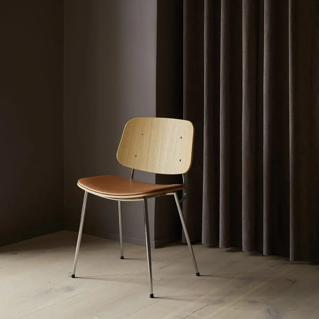 In 1952 Mogensen built onto the Søborg series with a steel-framed version, a design that he viewed as a reflection on international modernism. The generous back and seat with optional upholstery provides for many hours of use.