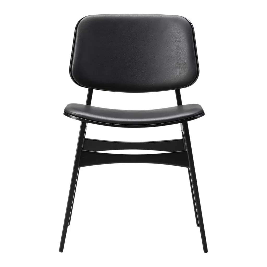 Mogensen presented the prototype for the Soborg chair in 1950. His intention was to fuse plywood shells with his signature solid wood functionalism. The generous back and seat with optional upholstery provides for many hours of use.