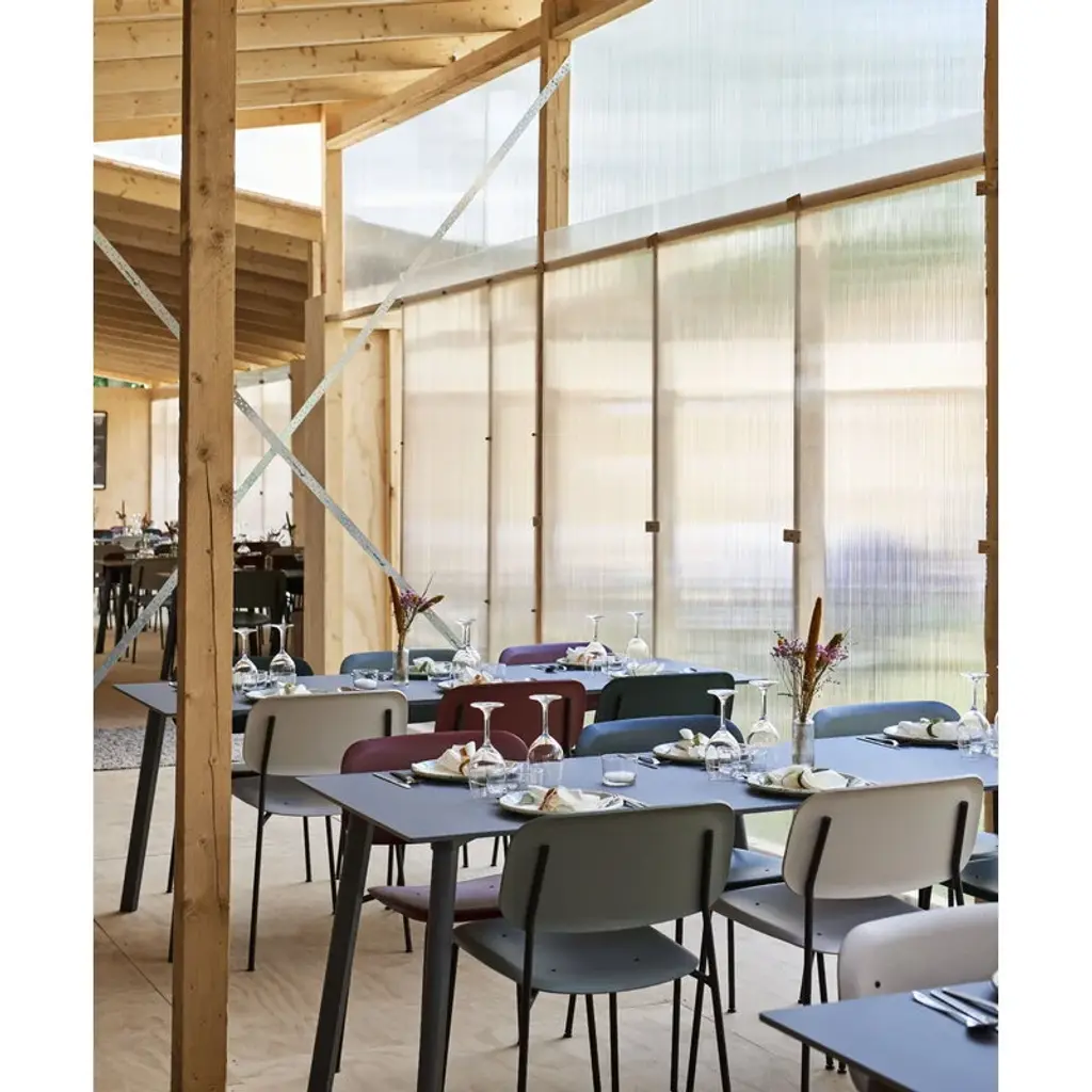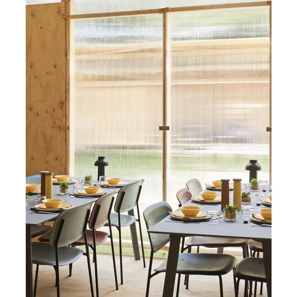 The Soft Edge 40 chair from HAY, as its name suggests, features a pleasant, rounded design: the edges of its seat and low backrest curve back eliminating any sharp edges and corners. When creating the chair, design studio Iskos-Berlin utilized the latest innovations in molded plywood that allow new three-dimensional forms and reduced consumption of natural resources. The result is Soft Edge, a lightweight and stackable chair that is well suited for homes and public spaces alike. In 2021, HAY renewed the surface treatments of its wood furniture by replacing their paints and lacquers with more environmentally friendly, water-based alternatives. This chair is of newer production and has been finished with a water-based lacquer.