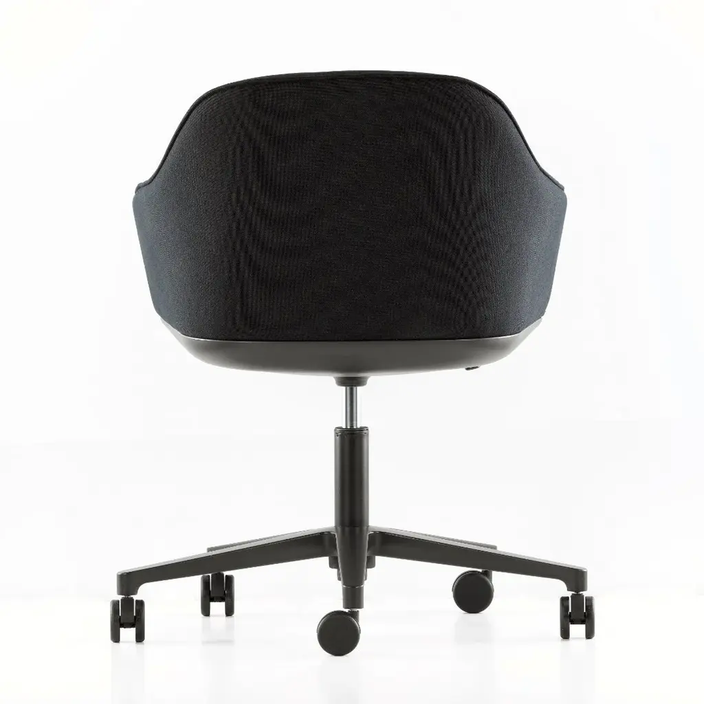 The seat construction of the Softshell Chair ensures a level of comfort that is first revealed upon use: vertical ribs concealed in the back shell adapt to the user, providing freedom of movement as well as superb comfort, even for prolonged periods of sitting. The smooth contours and appealingly soft upholstery over the entire surface give the Softshell Chair its calm, cosy and inviting character.