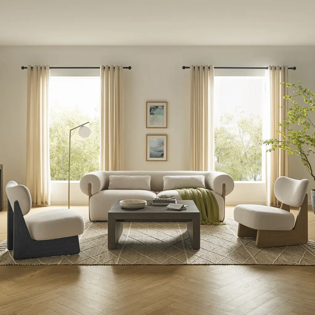 Unwind in Solange's comfy performance bouclé or leather seat and curved backrest.