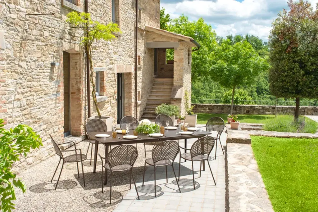 High quality and curved, sinuous shapes are the defining features of the Sole collection. The large fretwork characterises the balanced and simple style of this collection. Sole is a collection suitable for both residential and contract contexts.