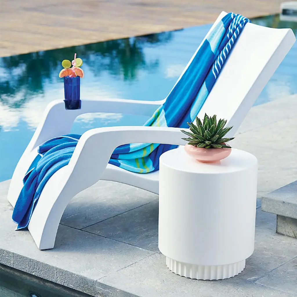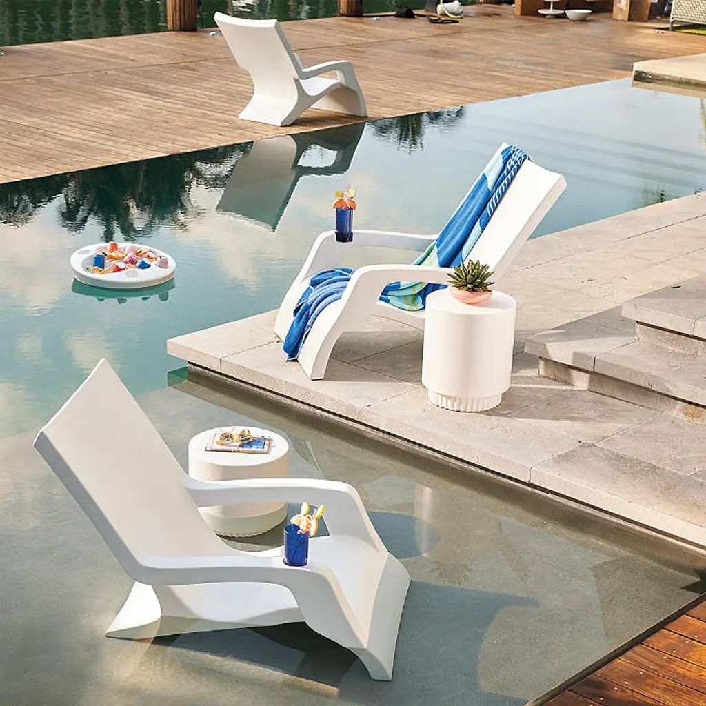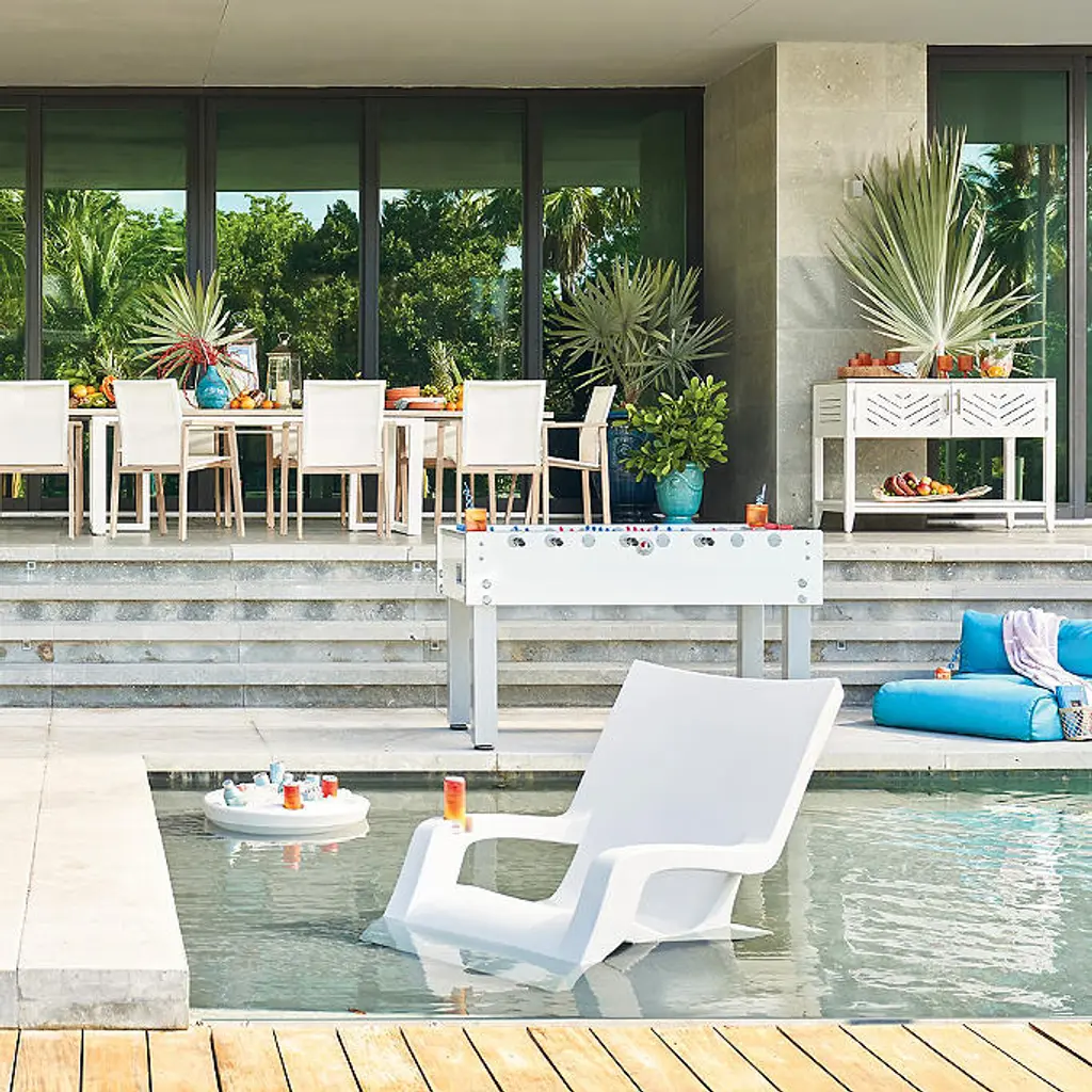 Part of our popular Soleil Collection, this in-water chair offers superb lumbar support and armrests to provide the ultimate in-pool or poolside relaxation. Designed for use on a Baja shelf in up to 9 inches of water, it also works great on the deck or in the sand. This chair provides a stylish spot to sunbathe, and it resists the effects of weather and pool chemicals. Designed for sitting in up to 9 inches of water Crafted of durable polyethylene Built to withstand sun, weather and chemicals of any pool or outdoor environment Color will not yellow; stabilized for up to 16,000 hours in the sun Easy setup: To fill, remove plug in the bottom, flip the chair and hold underwater; once it fills, screw plugs back in place; the unit will remain in place on your Baja shelf Contoured for comfortable lumbar support Pairs with our Soleil Water Lounger and Soleil Side Table Compatible with all pool types, including vinyl It is recommended to drain the water from the chair and replace with new, chlorinated water once a pool season Clean with a soft bristle brush or cloth - for routine cleaning, just use water; for deeper cleaning, remove from pool and use a mild household cleaner or melamine sponge. Made in USA A Frontgate exclusive. At Frontgate, our primary focus is quality. We guarantee that every product we sell will stand up to the supreme test – our customers' satisfaction. To learn more about our policies, visit our Shipping & Processing, Returns & Exchanges and Warranty & Price Guarantee pages.