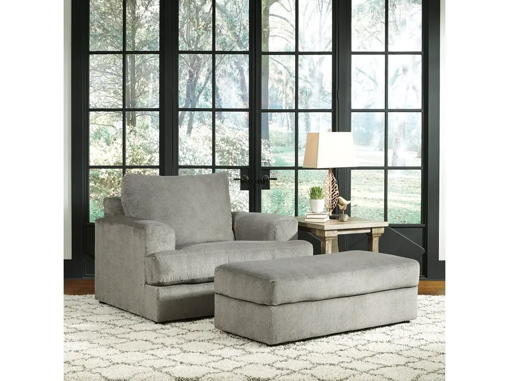 Flaunting a trendsetting silhouette, the Soletren oversized chair puts the contemporary in your contemporary home. Its ample seating space gives you elongated plushness for deep relaxation. And the microfiber fabric satisfies your need for a piece that feels as good as it looks.