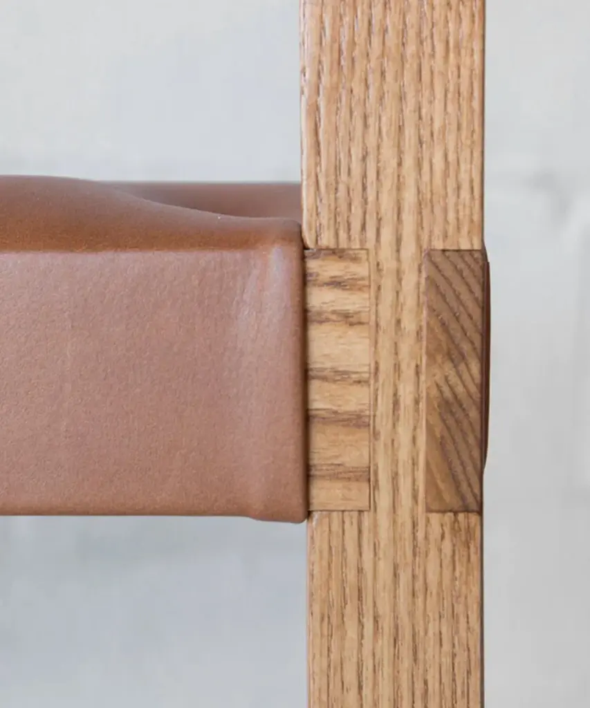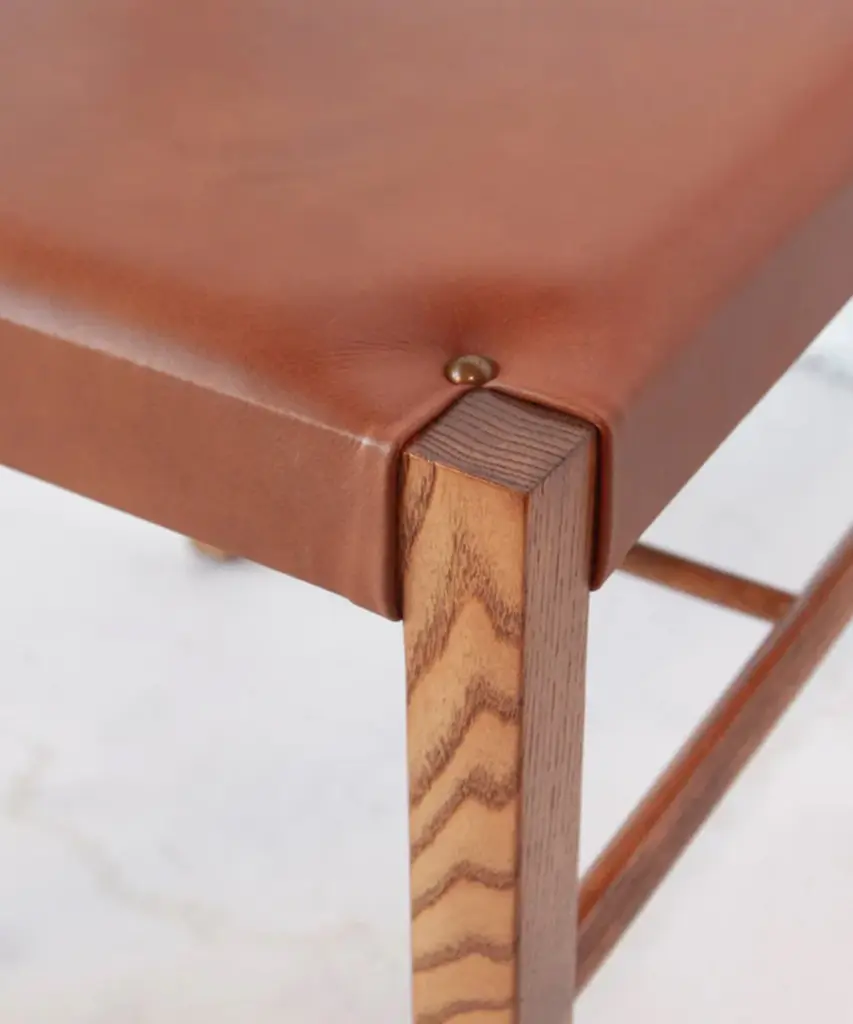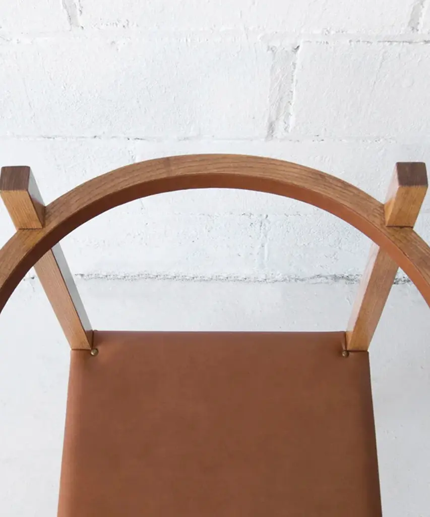 Sculptural, yet restrained, the Soren Series was designed to celebrate its two materials - wood and leather. The chair's backrest is a bold, circular arch, lined with a strip of leather on its inner face. High-density foam lines the seat bringing comfort to this bold, statement-making chair. The series is available in a range of wood and leather finishes. Each piece is designed and hand-produced by Coil + Drift, a lauded New York's Catskill Mountains-based design studio known for its vividly three-dimensional and material-forward collections.