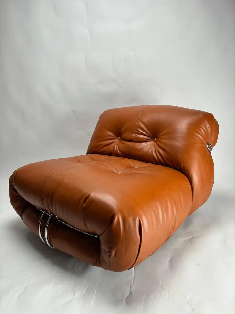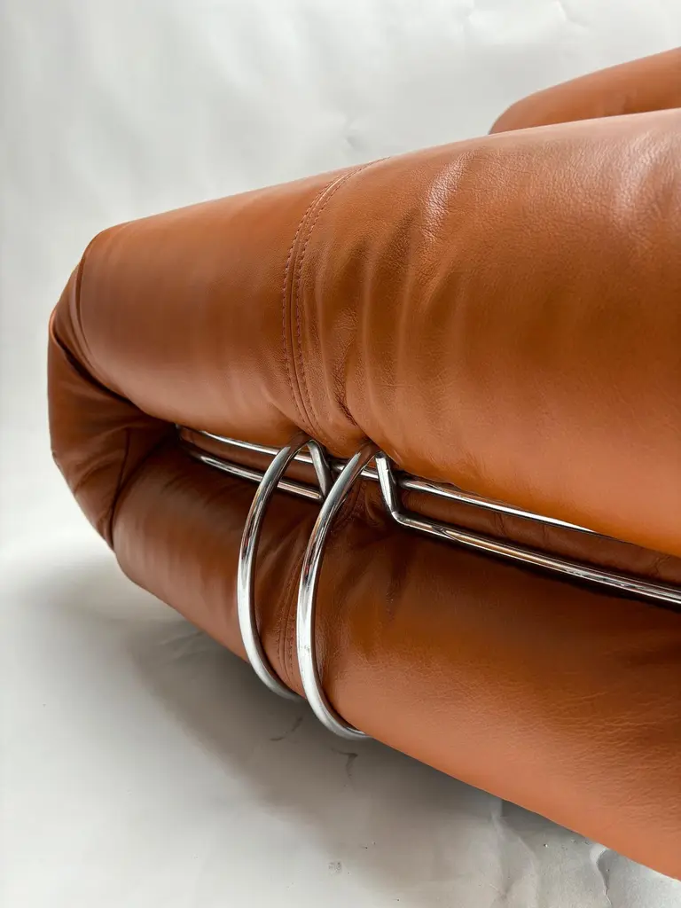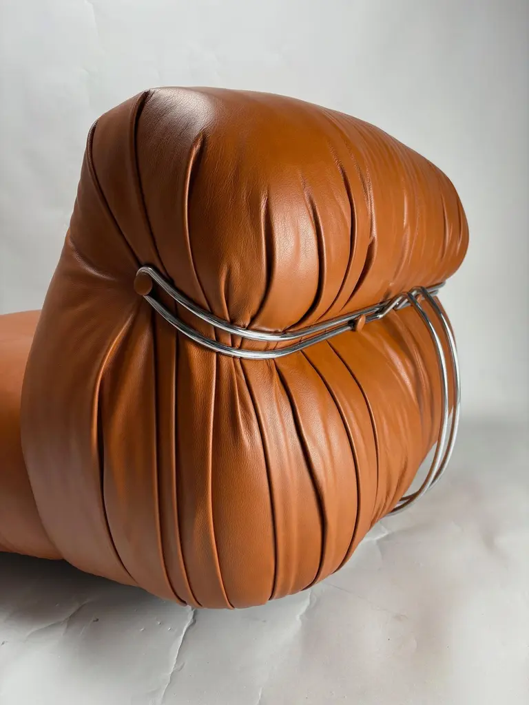 Afra & Tobia Scarpa, Soriana Sofas, Cassina, Italy, 1970s.Afra (1937-2011) & Tobia (1935-) Scarpa both studied at the Venice Institute of Architecture. Their pieces are exhibited in many museums worldwide, collections the MoMa in New York and the Musée du Louvre in Paris. the Soriana model is certainly one of their most iconic and representative creations, which in 1970 won the most prestigious Italian design award, the "Compasso D'Oro".The sofas comes from the waiting room of an important hotel designed by the architect Takahama. It has been reupholstered with top quality Italian leather and is ready to use. Our atelier offers custom restoration and special reupholstering on request.