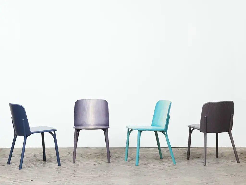 Split, wooden chair by TON.The Split series links more than the 150-year-old technology of wood-bending with a contemporary design. It will be the very first time we can see manually bent split massive wood that creates the design and functional elements of seating furniture.The Split Collection is not only about the unique manual bending technology. “I wondered about what I could give to a chair - apart from its shape. Therefore, I chose to highlight the gradient colour. It is not easy to do, but it can be seen in so many ways in the countryside - sunrises and sunsets, the surface of the sea, colourful tree leaves,” said Arik Levy - revealing another speciality of the Split. He chose its own special colour palette, in which the gradient will be sprayed on the new collection. Every single piece produced in this way is an original, made by skilled craftsmen’s hands. The same as is true of our traditional TON technology.