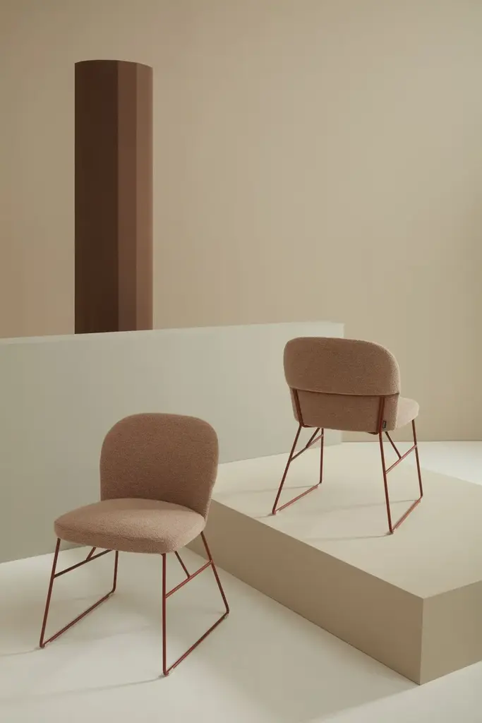Spy 661 is an upholstered sled-base chair with a steel frame.Spy is a broad and complete collection of armchairs, tables, and coffee tables.The leitmotif is the design of the leg, which tapers to a point and flares out slightly.A distinctive stylistic feature of the seats is the craftsmanship of the shell, which is at its best at the back, folding inward to embrace the rear legs.There are four armchair models available, ranging from the elegant small armchair to the cozy and comfortable bergère.In addition to the wooden base, a metal version shaped to fit the upholstered shell is also available.