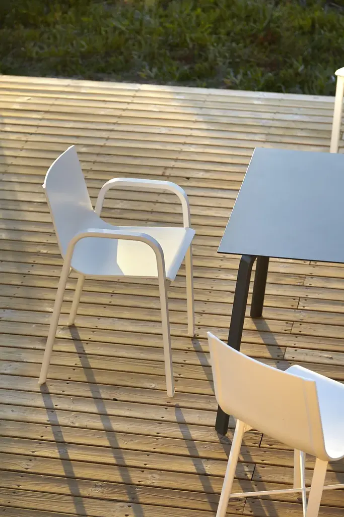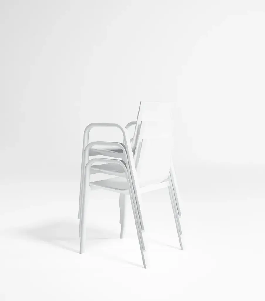 “Stack is a stackable outdoor furniture collection inspired by the nautical world with design elements reminiscent of the 1960’s and 1970’s. The collection’s clean and straightforward structures along with the materials used give shape to simple, balanced and incredibly light pieces. GANDIABLASCO’s innovative design uses self-supporting fabric over the extruded aluminum body to provide a simple construction with lightness and comfort. The Stack collection is ideal for both large contract installations as well as small residential projects.”Made of thermo-lacquered aluminium profiles, phenolic plate and Batyline fabric. Mats are covered with water-repellent fabric. Removable fabric cover.Model 3, Model 4, Model 5 and Model 6 made of therm-lacquered aluminium profiles and stiff polyurethane.Collections colour sample: white, agate grey, cement grey, sand, bronze, wine red, blue grey, grey blue, anthracite and black.Fabric colours: white, grey, stone, camel, green, sand, bronze, terracotta, blue and anthracite.
