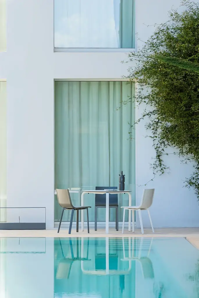 “Stack is a stackable outdoor furniture collection inspired by the nautical world with design elements reminiscent of the 1960’s and 1970’s. The collection’s clean and straightforward structures along with the materials used give shape to simple, balanced and incredibly light pieces. GANDIABLASCO’s innovative design uses self-supporting fabric over the extruded aluminum body to provide a simple construction with lightness and comfort. The Stack collection is ideal for both large contract installations as well as small residential projects.”Made of thermo-lacquered aluminium profiles, phenolic plate and Batyline fabric. Mats are covered with water-repellent fabric. Removable fabric cover.Model 3, Model 4, Model 5 and Model 6 made of therm-lacquered aluminium profiles and stiff polyurethane.Collections colour sample: white, agate grey, cement grey, sand, bronze, wine red, blue grey, grey blue, anthracite and black.Fabric colours: white, grey, stone, camel, green, sand, bronze, terracotta, blue and anthracite.