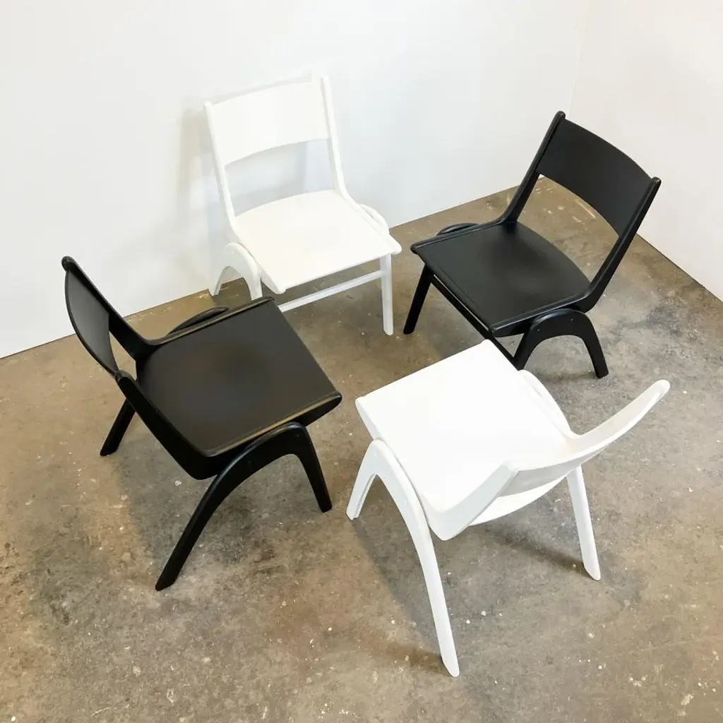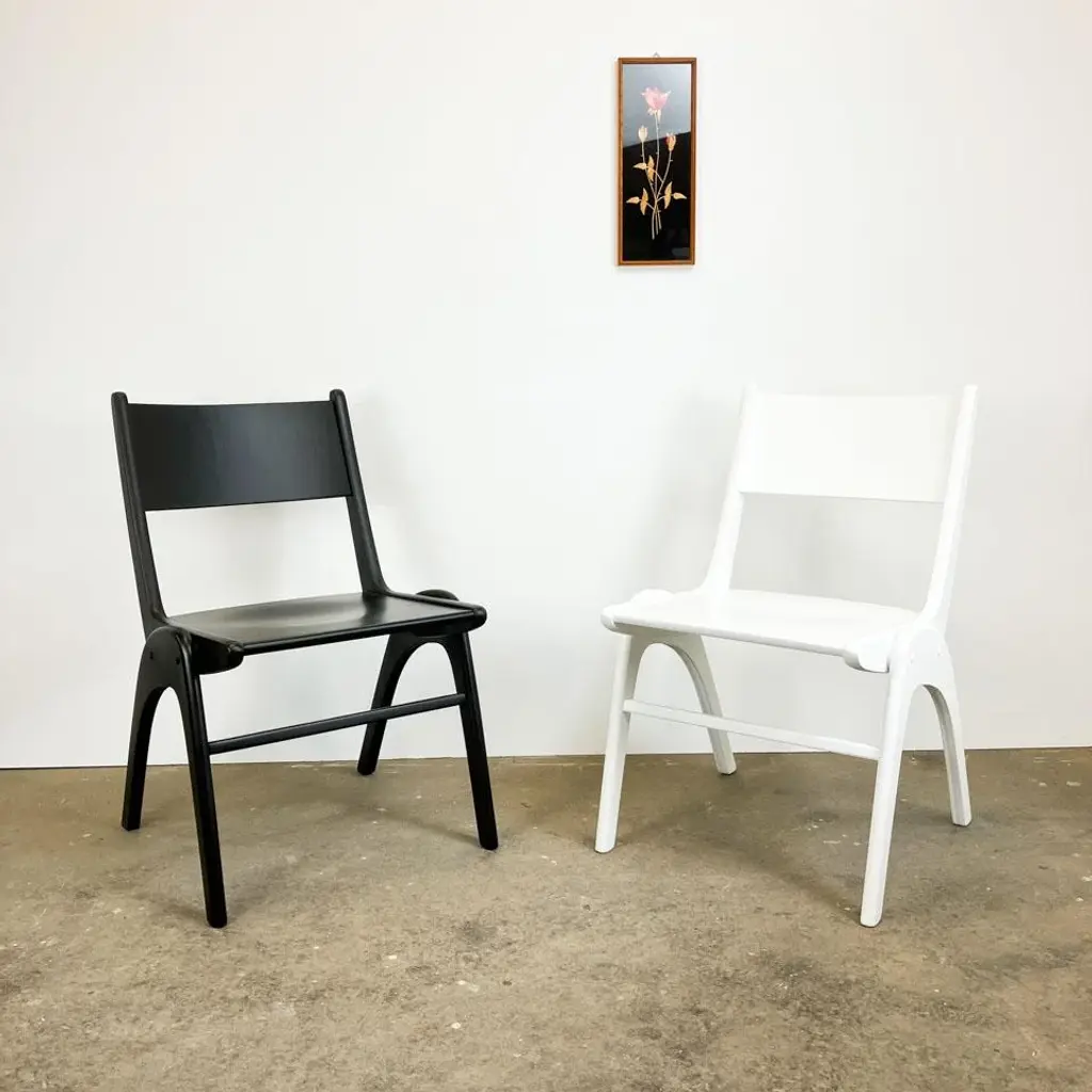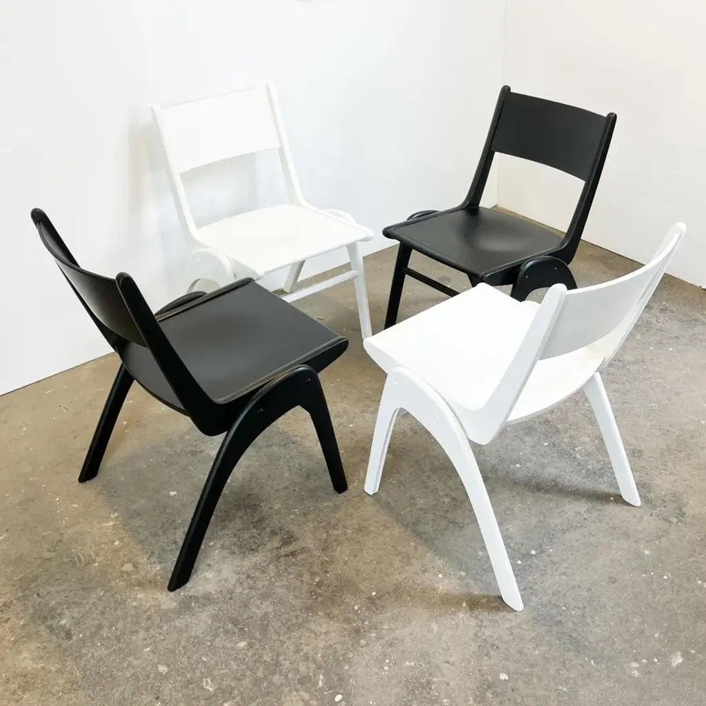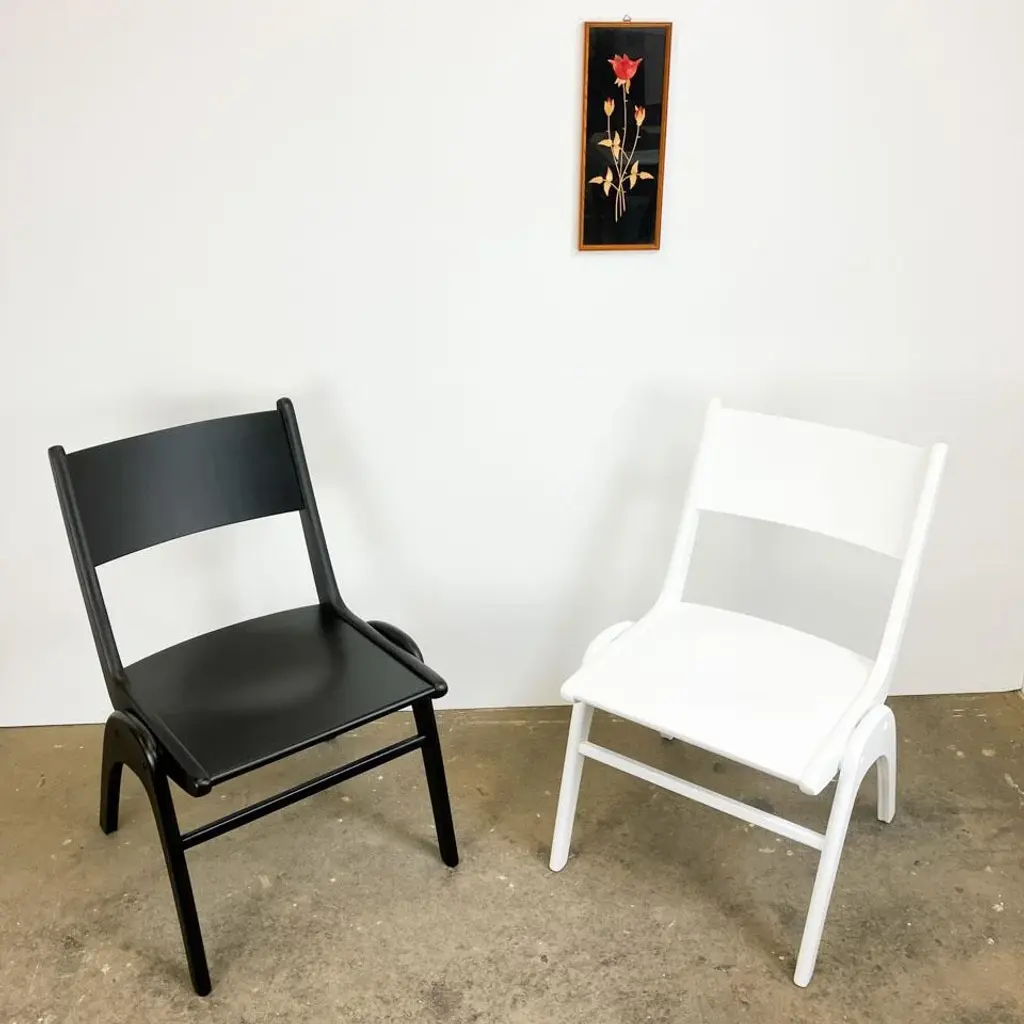 Super cool originals from Casala in a unique Bauhaus design. They are made entirely of beech/beech plywood and can be easily stacked thanks to the shape of the legs. Seat height: 45cm This piece has an attribution mark, I am sure that it is completely authentic and take full responsibility for any authenticity issues arising from misattribution