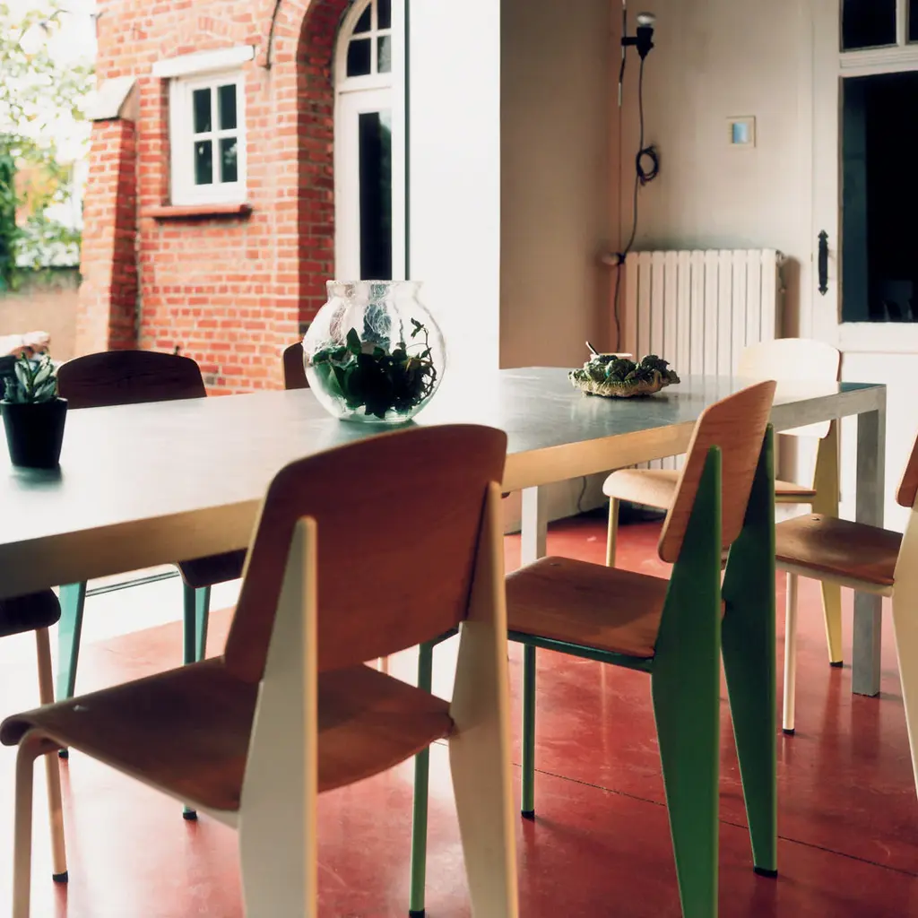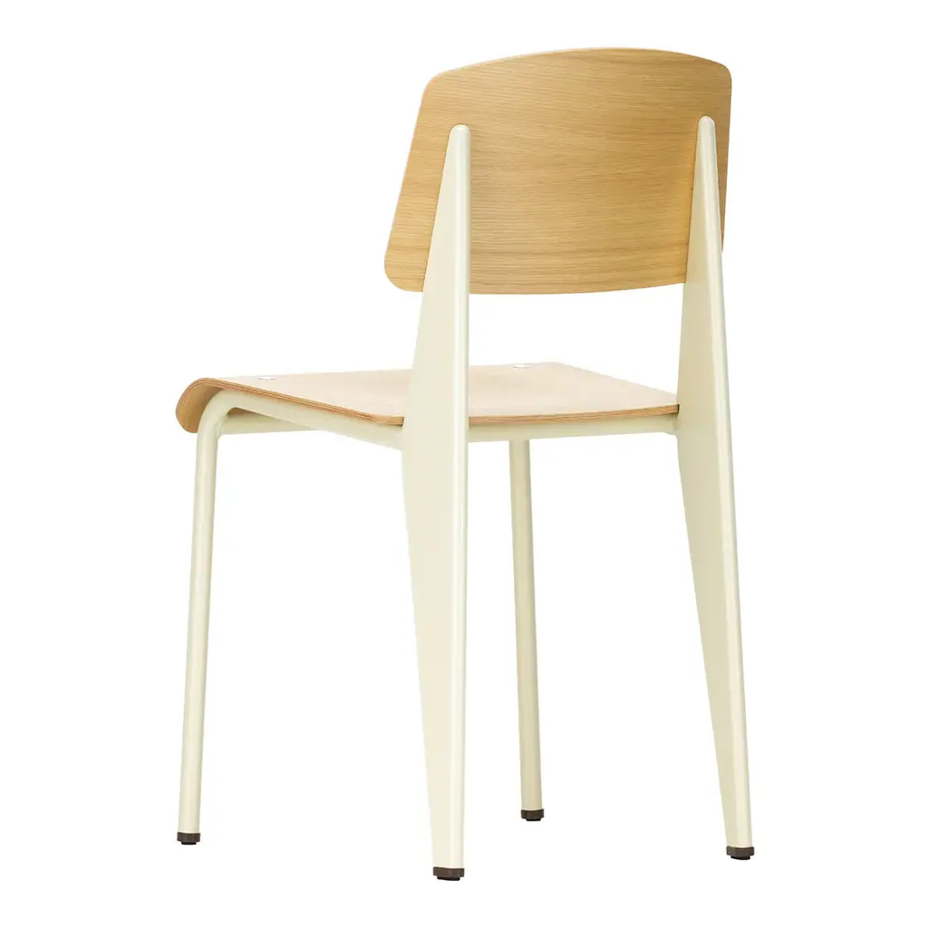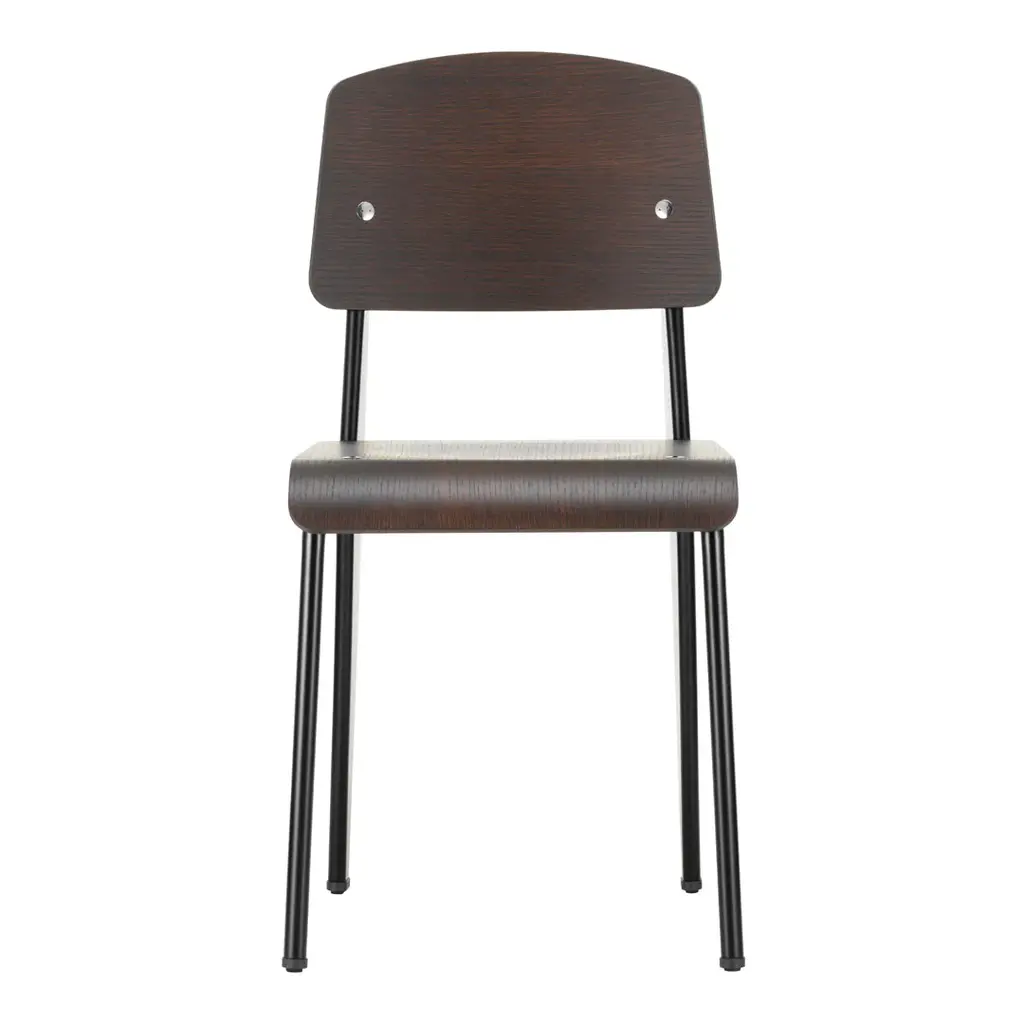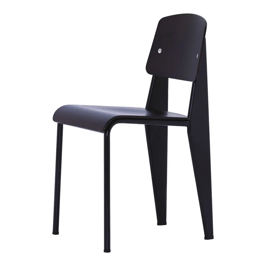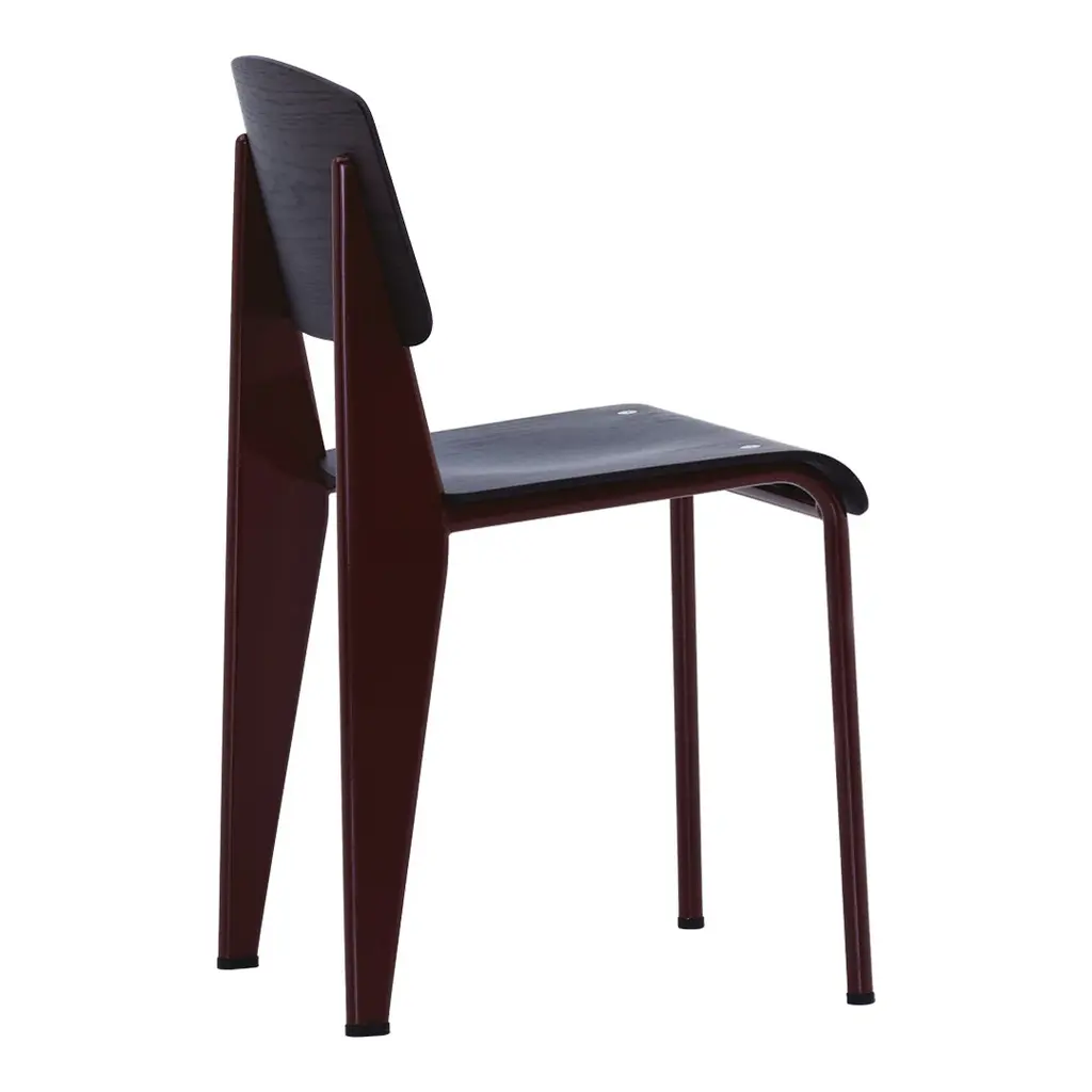 Chairs take the most stress on their back legs, where they bear the weight of the user's upper body. The engineer, architect and designer Jean Prouve incorporated this simple insight in his design for the Standard Chair: while steel tubing suffices for the front legs, since they are subject to less stress, the back legs are made of voluminous hollow sections that transfer the primary weight to the floor.