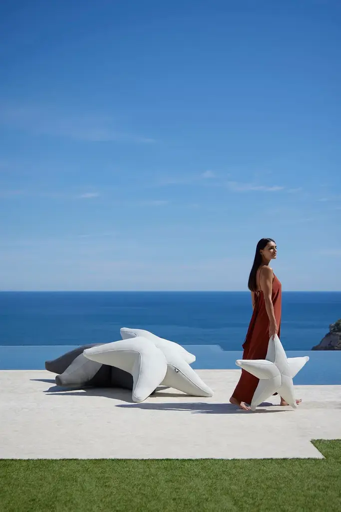 Starfish evokes a sense of marine feelings, and it will sure not go unnoticed! Conceived as a seat for one or two, Starfish is ideal for any surrounding: the garden, the patio, into the pool. Besides, you can combine its three sizes and different colours to create chilled out and relaxed areas that will definitely make all your friends jealous!Filling: 100% polystyrene pearls suitable for outdoor use and pool. The weight of the items increases in contact with the water as the fabric is 100% breathable and drainable and allow the water goes inside and drain properly after each use.