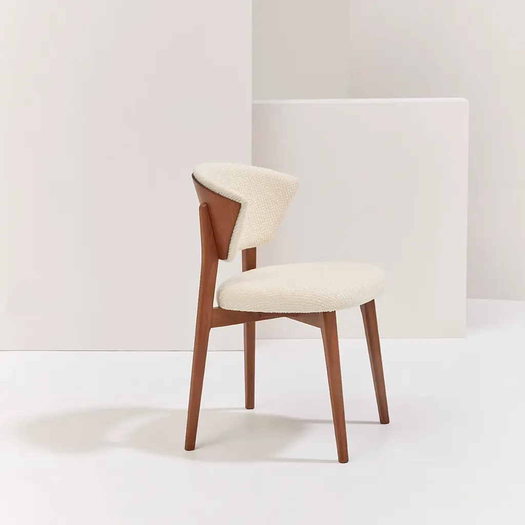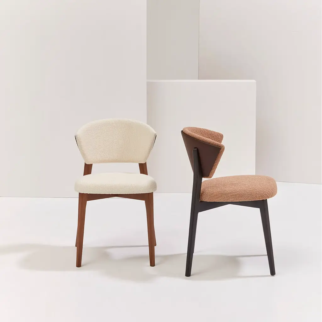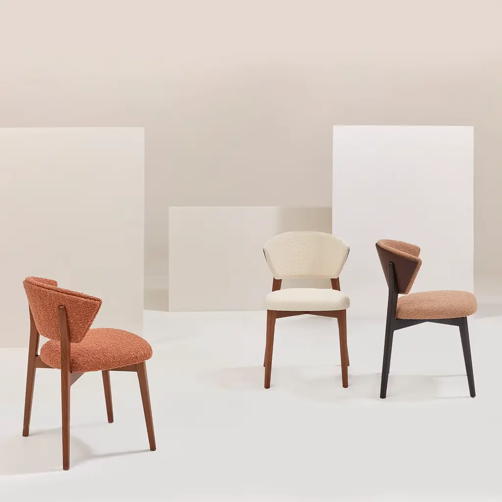 Stella epitomizes artisan craftsmanship and timeless elegance. Fashioned from rich beechwood with a distinguished Brionne finish, its backrest is adorned in luxurious dark brown leather, featuring two star-inspired cuts. Tailored for contract interiors, Stella exudes a discreet presence while offering unparalleled comfort with its generously padded seat and back. This chair designed by Matteo Ragni harmoniously combines exquisite materials and meticulous design, perfect for elevating any space.
