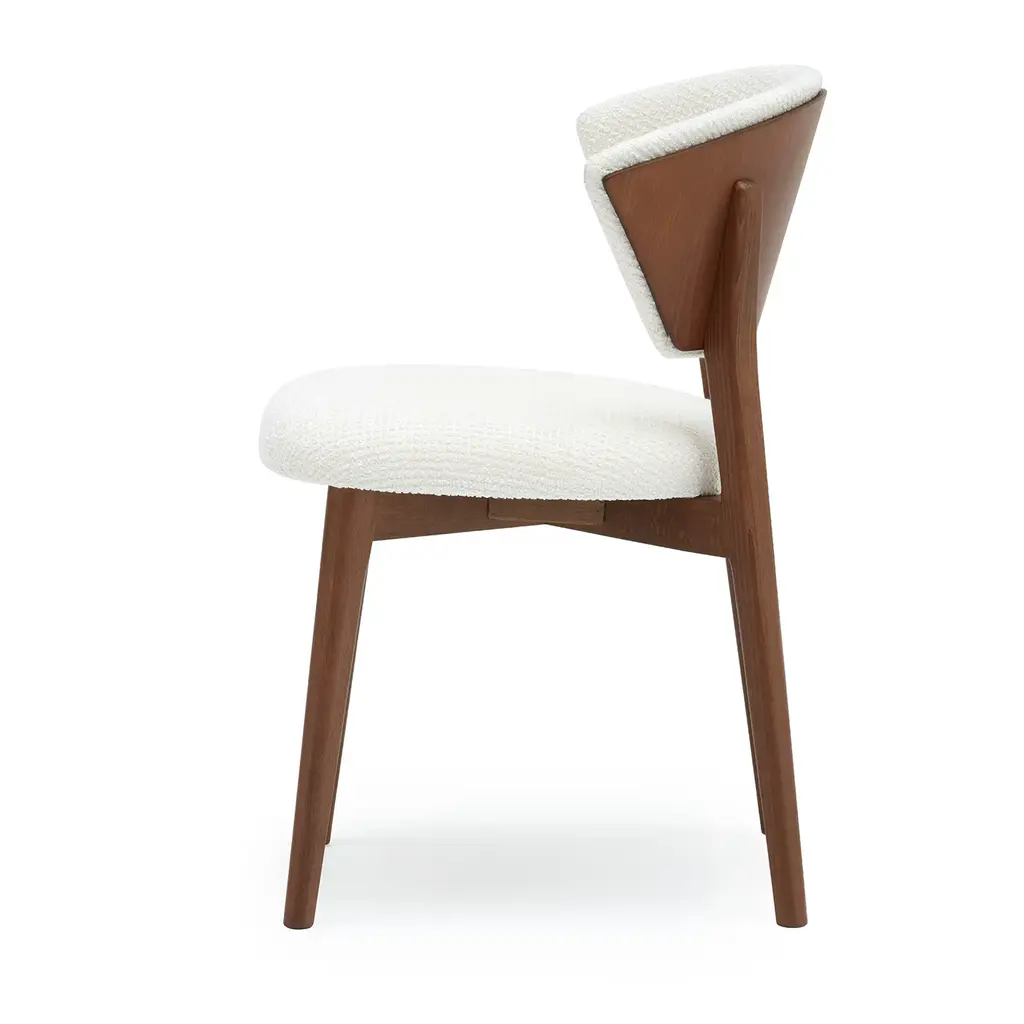 Designed by Matteo Ragni, the Stella chair combines refined aesthetics with exceptional comfort. Crafted from premium beechwood and finished in elegant Brionne, its solid frame offers reassuring stability. The backrest, inspired by star points, features two decisive cuts that add a unique and graceful touch. The generously padded seat and back provide unrivaled comfort, making it an ideal choice for contract interiors. Stella's understated elegance seamlessly enhances any sophisticated space.
