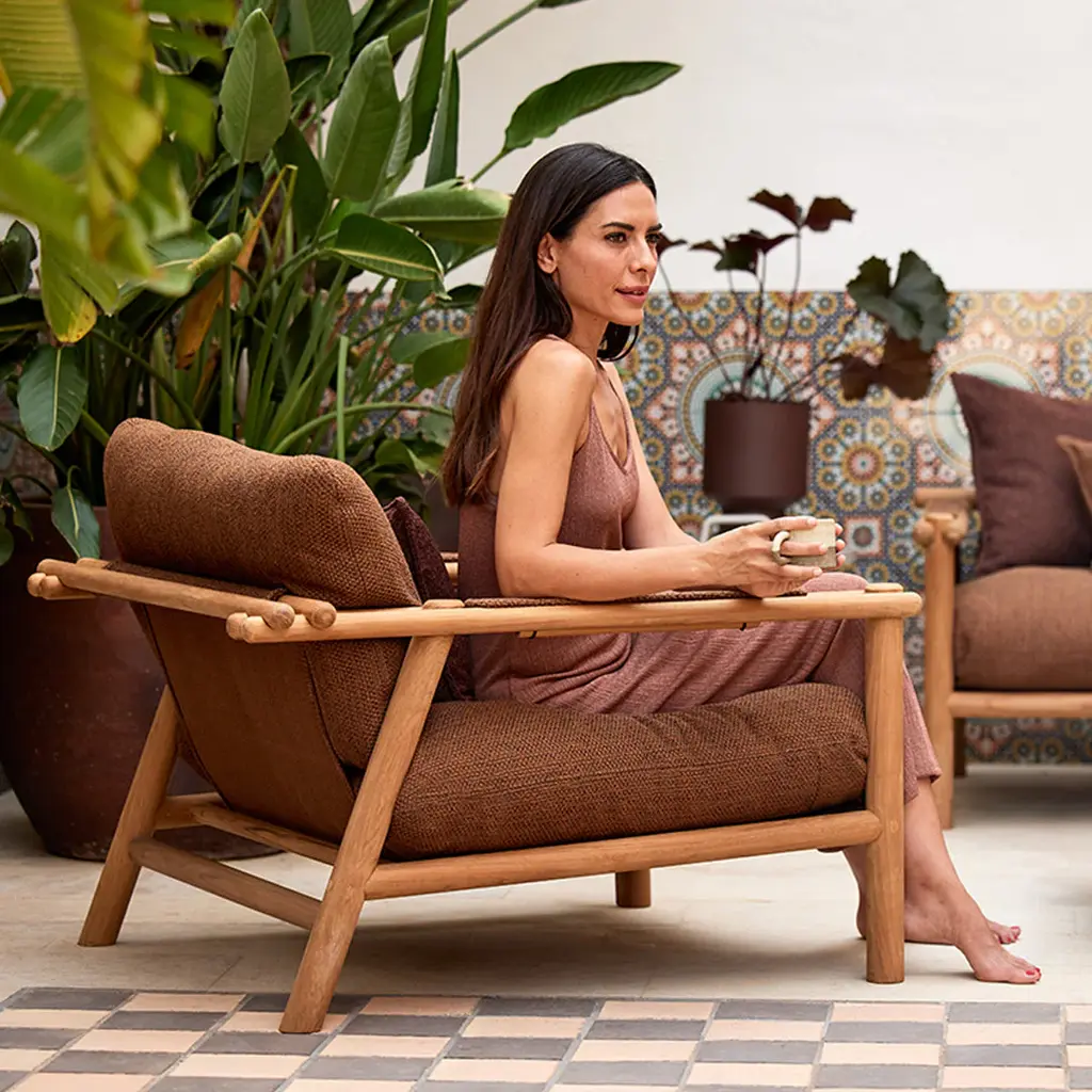 The Sticks Lounge chair is designed for relaxation. Drawing inspiration from sticks to bring natural beauty combined with rustic elegance to your outdoor space. The comfy cushions in Cane-line AirTouch include Cane-line QuickDry + Airflow system, which ensures that the cushions are dry approximately 1 hour after a downpour. The Sticks Lounge Chair combines high comfort and durability and is perfect for any outdoor space. Use it alone or combine it with the rest of the Sticks series.
