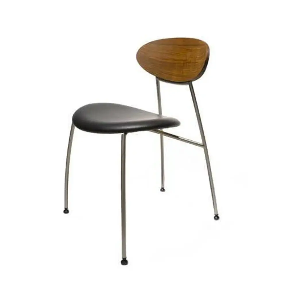Stone Chair Designer: Nissen & Gehl MDD Manufactured by: Naver Collection Stone chair in brushed stainless steel with an upholstered seat and wooden back. The chair features gentle curves that make it very comfortable to sit in.