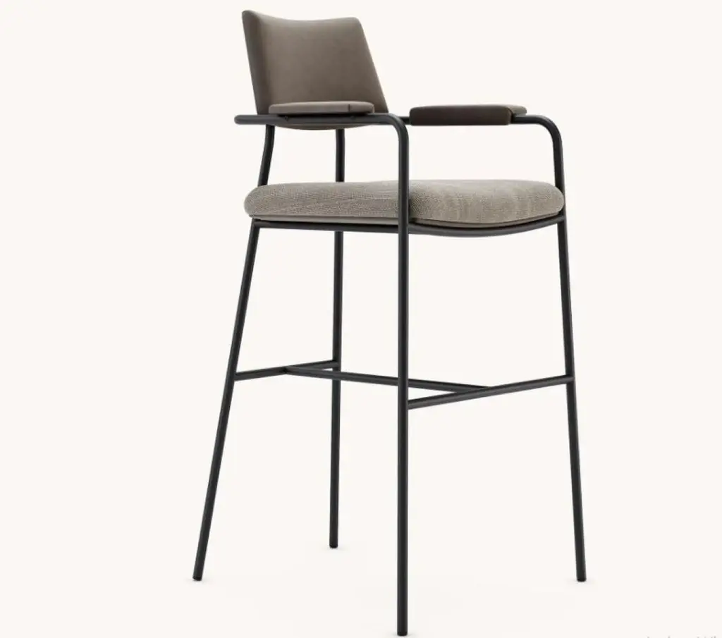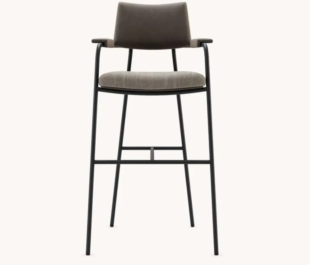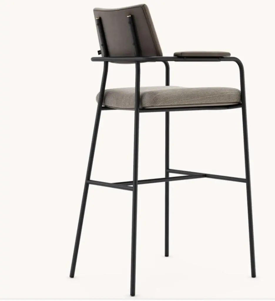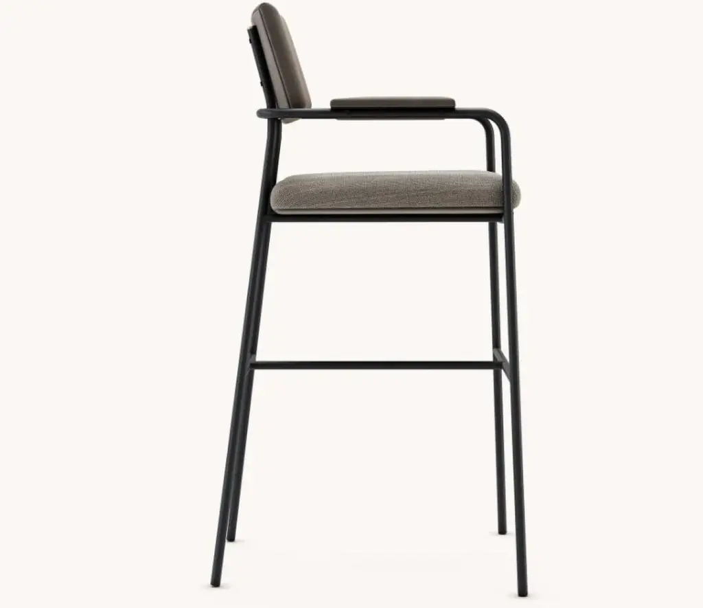 Stranger bar chair by DomkapaMaterials: fiber, black texturized steel. Dimensions: W 62 x D 65 x H 120 cm. Also available in different materials.The robust metal structure of Stranger bar and counter chairs gives this design powerful and impacting energy, like a symbol of strength. The slight curvy lines of the back and seat were conceived thinking about providing the best of a comfortable yet empowering seat. The upholstered arms will provide extra comfort and relaxation.The same delicate design can be found in a chair version to add a twist of fun to any project.Domkapa holds a tremendous passion for detailed stitching, presenting several similarities to the haute-couture philosophy focused on the value of a “made by hand”. Based in Portugal, Domkapa was founded in 2009 as a Private Label. The long and fruitful path, full of experience and achievements inspired the brand’s new identity and independence, in 2017.Domkapa challenges its team to create the perfect daily meeting between design and comfort in each piece of the brand’s collections. Our design team works side by side with the production, and this organic synergy allows the creation of innovative designs.