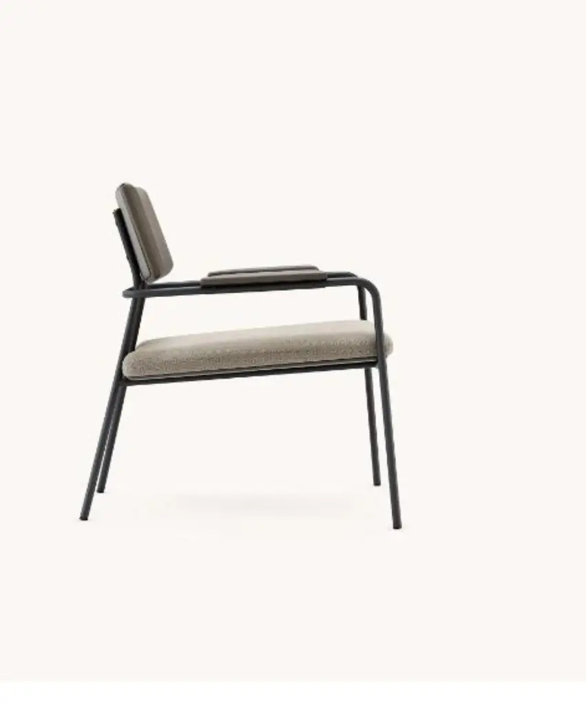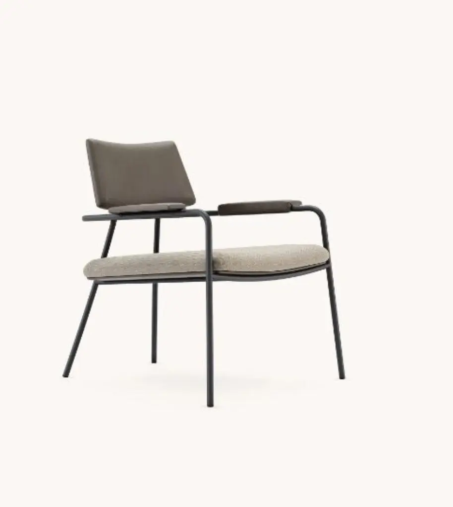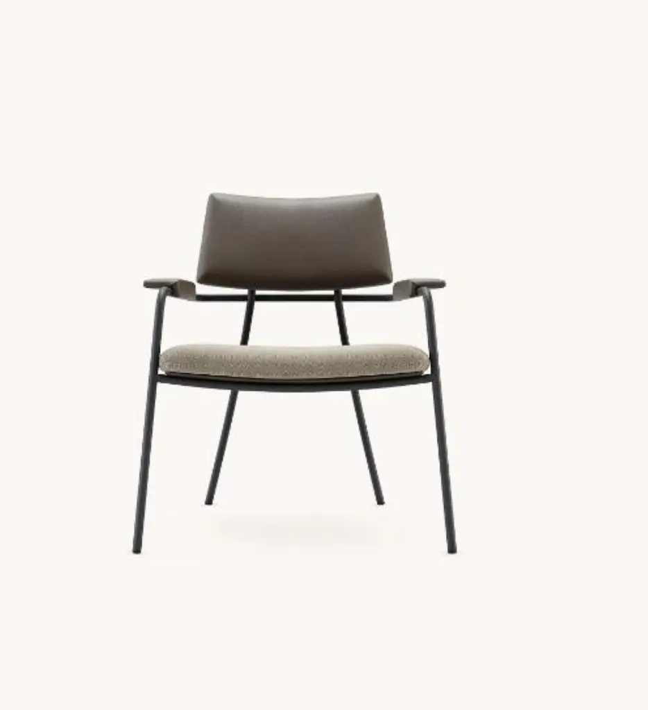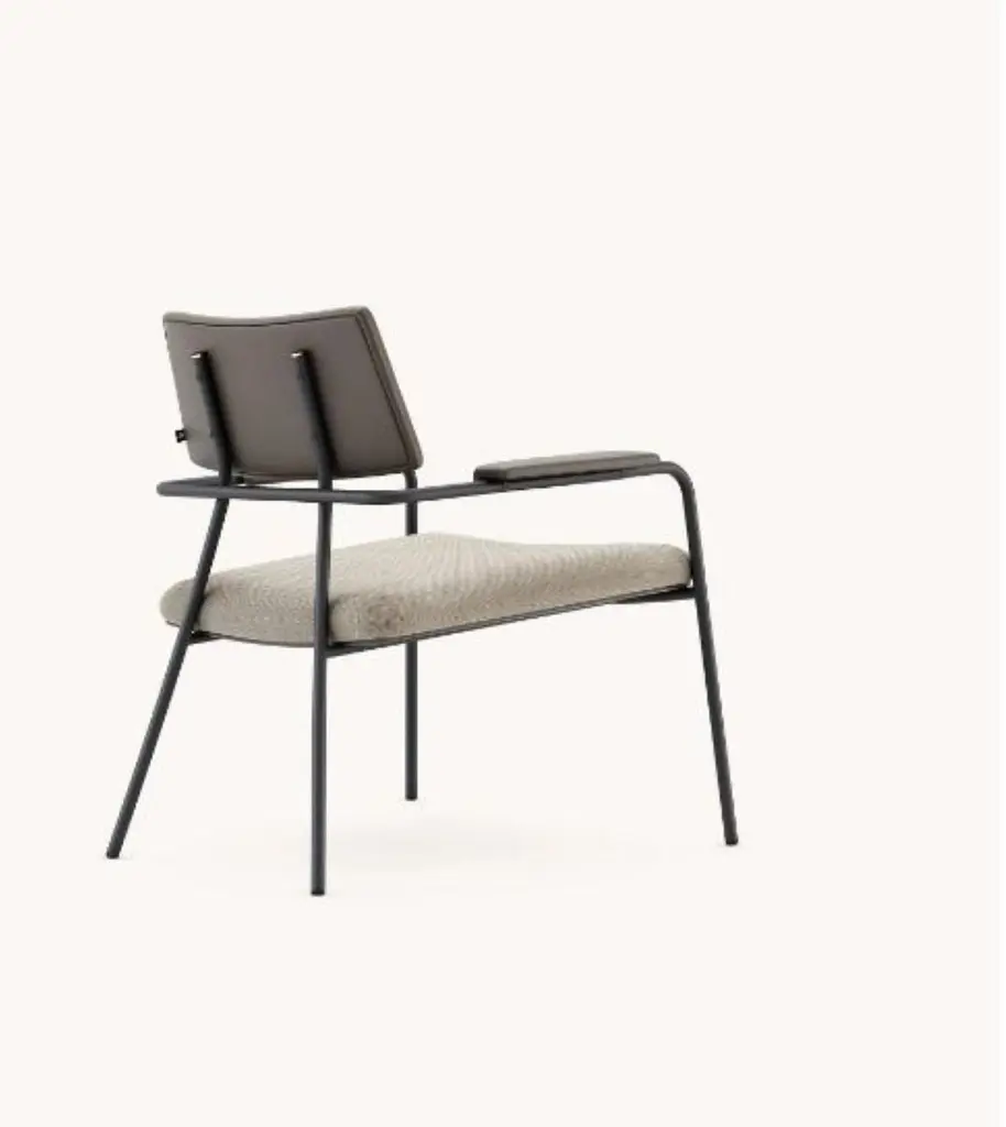 Stranger chair by DomkapaMaterials: Patterned, Natural Leather, Gold Polished Stainless Steel.Dimensions: W 67 x D 65 x H 91 cm. Also available in different materials. Stranger armchair is a contemporary choice for timeless decors with industrial inspiration. The black texturized steel structure gives a rough look to this design while the upholstered seat and back cushions provide a warm touch. At the same time, small details in gold polished stainless steel add another layer of opulence to the chair. The combination of different textures and materials makes Stranger armchair an unexpected piece.Domkapa holds a tremendous passion for detailed stitching, presenting several similarities to the haute-couture philosophy focused on the value of a “made by hand”. Based in Portugal, Domkapa was founded in 2009 as a Private Label. The long and fruitful path, full of experience and achievements inspired the brand’s new identity and independence, in 2017.Domkapa challenges its team to create the perfect daily meeting between design and comfort in each piece of the brand’s collections. Our design team works side by side with the production, and this organic synergy allows the creation of innovative designs.