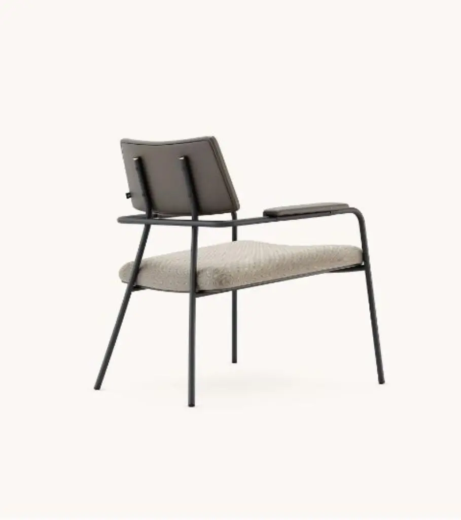 Stranger counter chair by DomkapaMaterials: fiber, black texturized steel. Dimensions: W 62 x D 65 x H 105 cm. Also available in different materials. The robust metal structure of Stranger bar and counter chairs gives this design powerful and impacting energy, like a symbol of strength. The slight curvy lines of the back and seat were conceived thinking about providing the best of a comfortable yet empowering seat. The upholstered arms will provide extra comfort and relaxation.The same delicate design can be found in a chair version to add a twist of fun to any project.Domkapa holds a tremendous passion for detailed stitching, presenting several similarities to the haute-couture philosophy focused on the value of a “made by hand”. Based in Portugal, Domkapa was founded in 2009 as a Private Label. The long and fruitful path, full of experience and achievements inspired the brand’s new identity and independence, in 2017.Domkapa challenges its team to create the perfect daily meeting between design and comfort in each piece of the brand’s collections. Our design team works side by side with the production, and this organic synergy allows the creation of innovative designs.